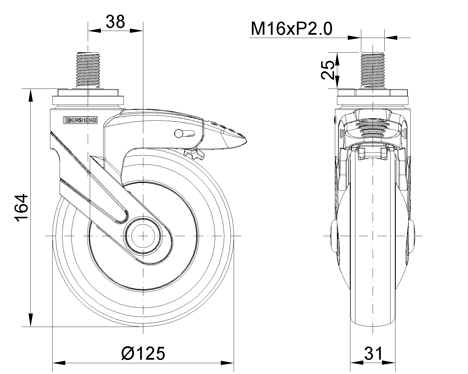 | (màu xanh xám)Đường kính bánh xe đầy đủ × chiều rộng bánh xe 125 x 31mm |