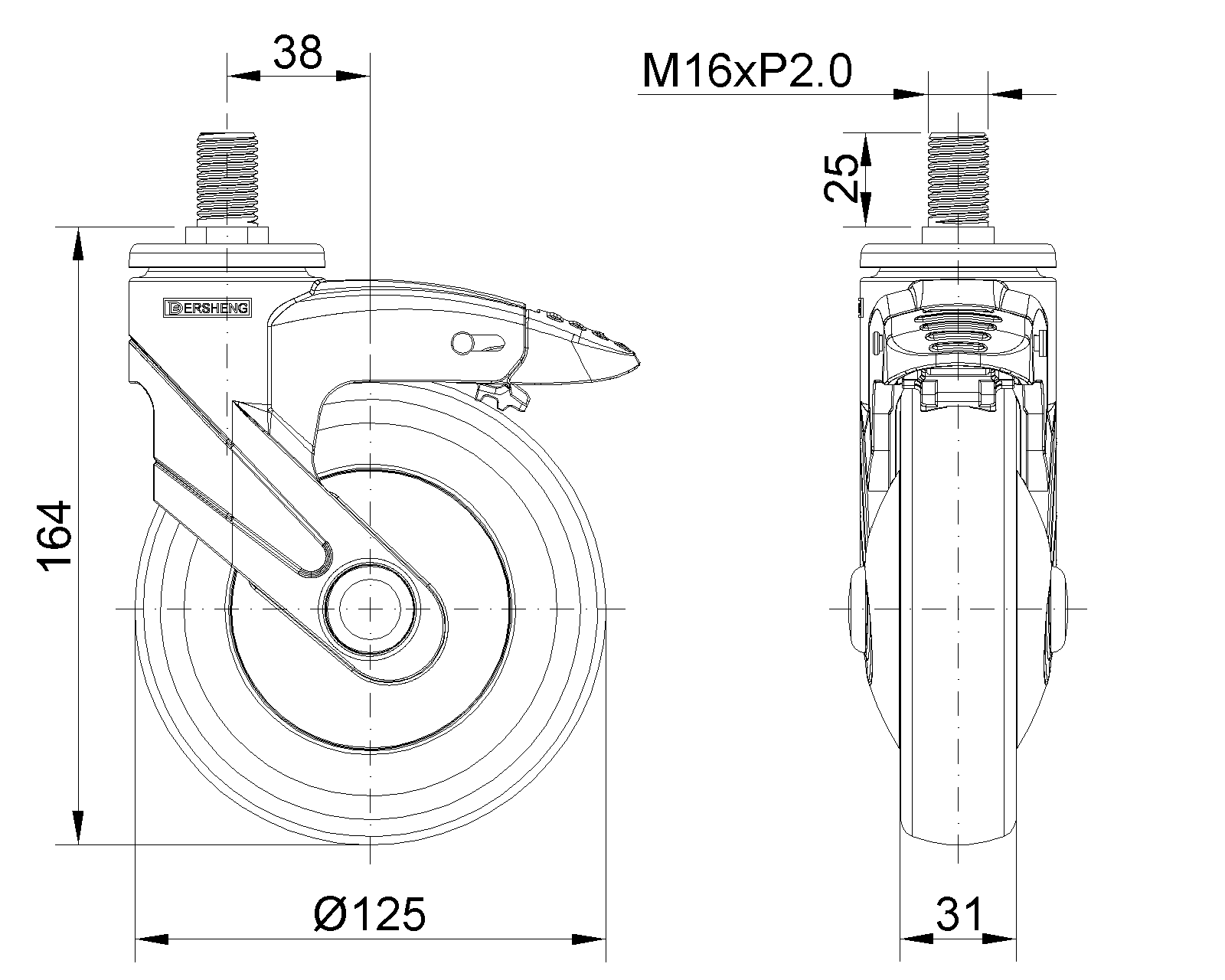 | (màu xanh xám)Đường kính bánh xe đầy đủ × chiều rộng bánh xe 125 x 31mm |