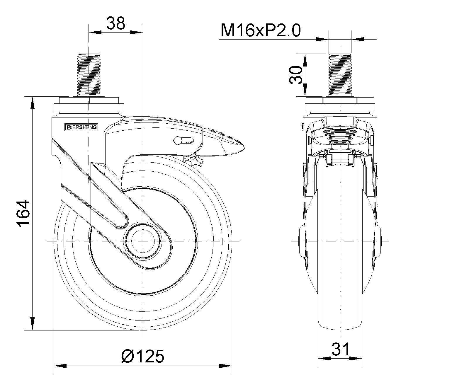| (màu xanh xám)Đường kính bánh xe đầy đủ × chiều rộng bánh xe 125 x 31mm |