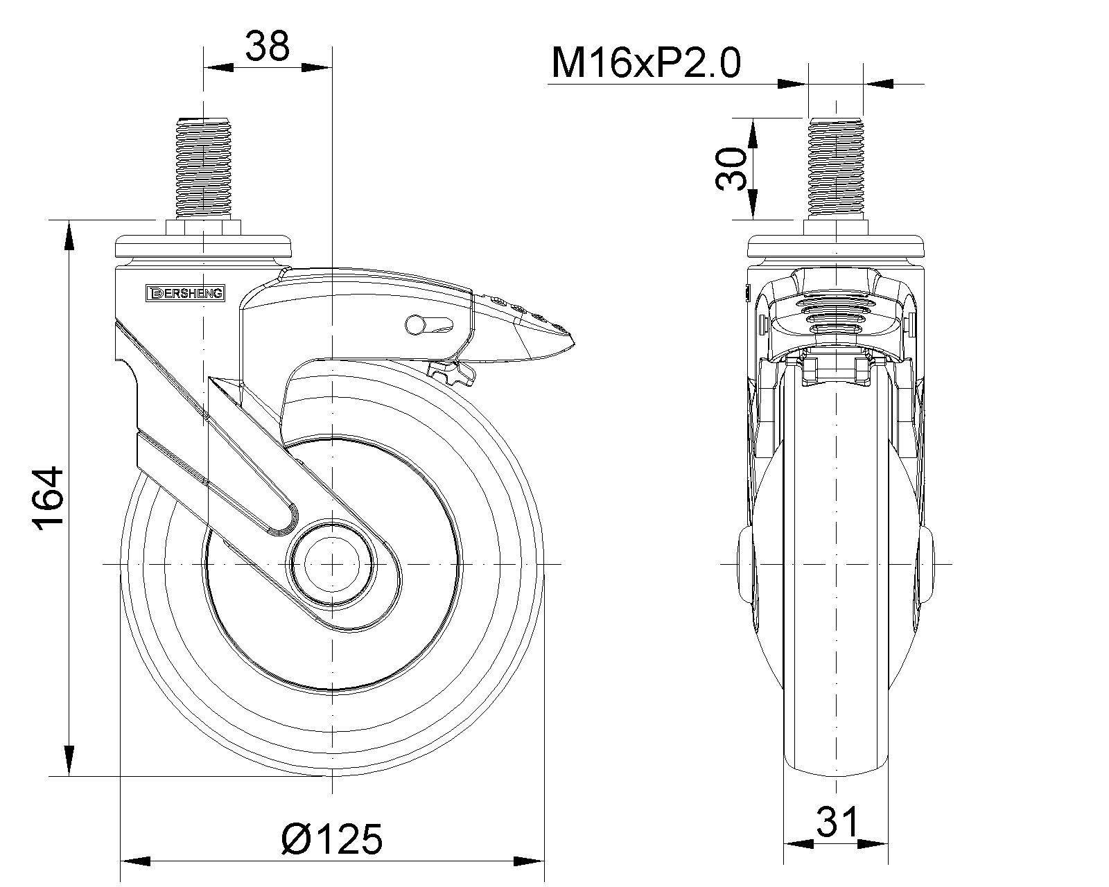 | (màu xanh xám)Đường kính bánh xe đầy đủ × chiều rộng bánh xe 125 x 31mm |