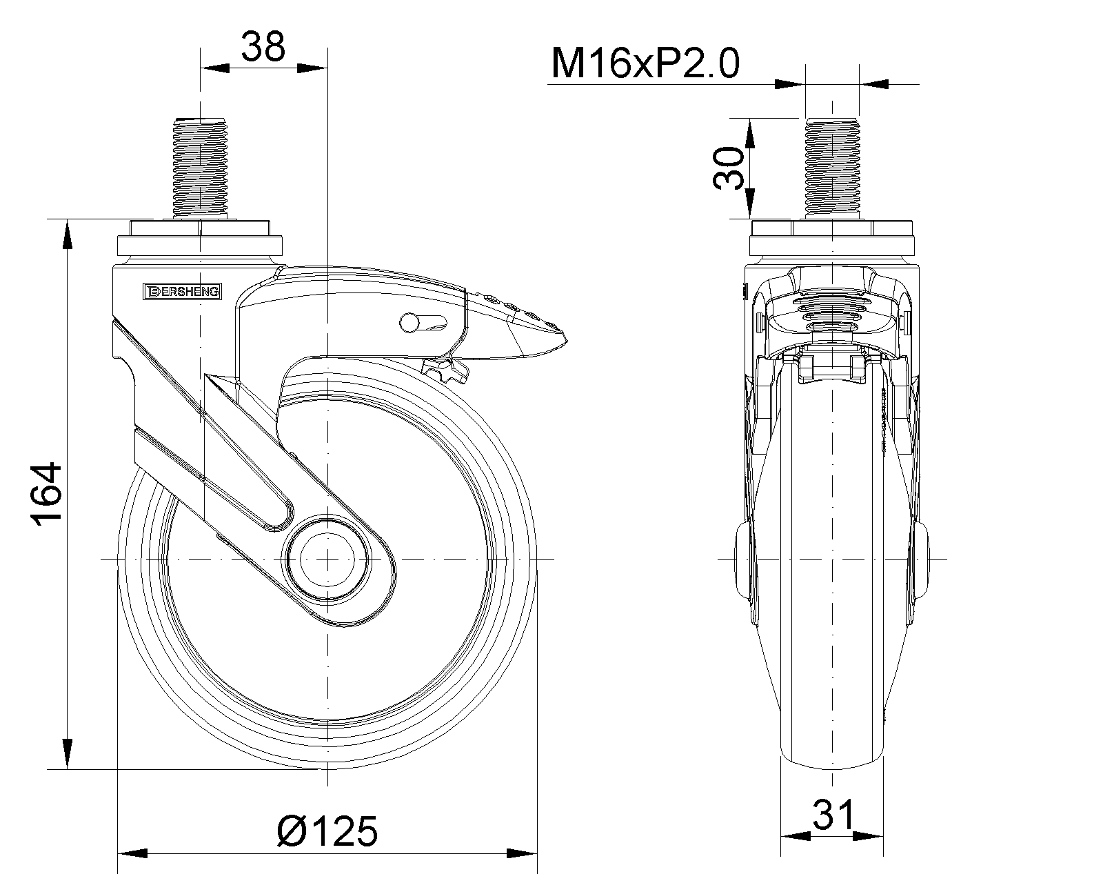 | Bánh xe PPR Kiểu cổ điển (Màu ngọc xám đậm) Đường kính bánh×Chiều rộng bánh 125×31mm |