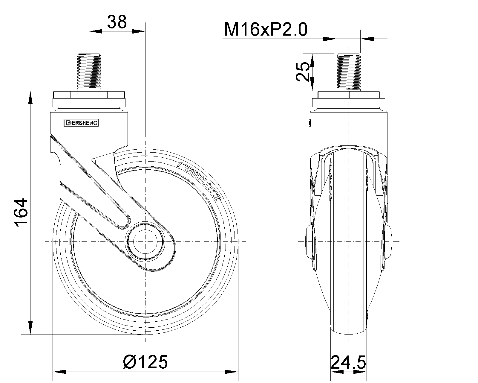 | Bánh xe PPR cổ điển, bánh xe xoay, ren M16x25 Chân màu xanh xám được gia cố bằng polyamide, lắp đặt bằng ren Chống gỉ, chống ăn mòn, thẩm mỹ, tiết kiệm và cho phép xoay trơn tru Lõi bánh xe bằng polypropylene chịu va đập, bề mặt bánh xe bằng chất đàn hồi nhiệt dẻo (TPR) Màu xám đậm, vòng bi bánh xe—vòng bi cầu chính xác |