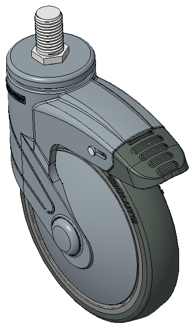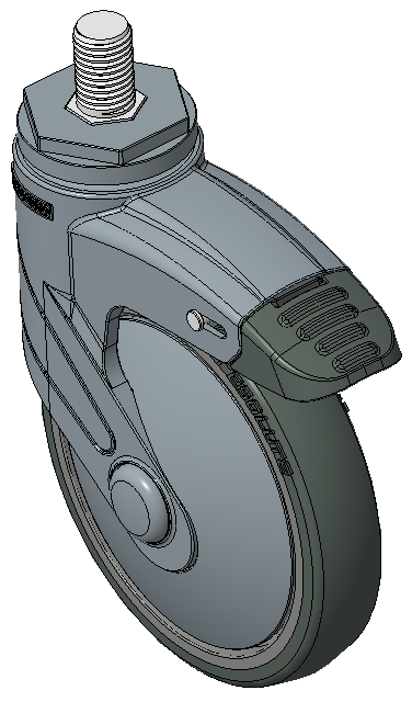 Bánh xe thật, ren M16x25 Chân màu xanh xám làm bằng cốt thép polyamide, lắp đặt bằng ren Chống gỉ, chống ăn mòn, thẩm mỹ, tiết kiệm và cho phép xoay trơn tru Lõi bánh xe bằng polypropylene chịu va đập, bề mặt bánh xe bằng chất đàn hồi nhiệt dẻo (TPR) Màu xám đậm, vòng bi bánh xe—vòng bi cầu chính xác |