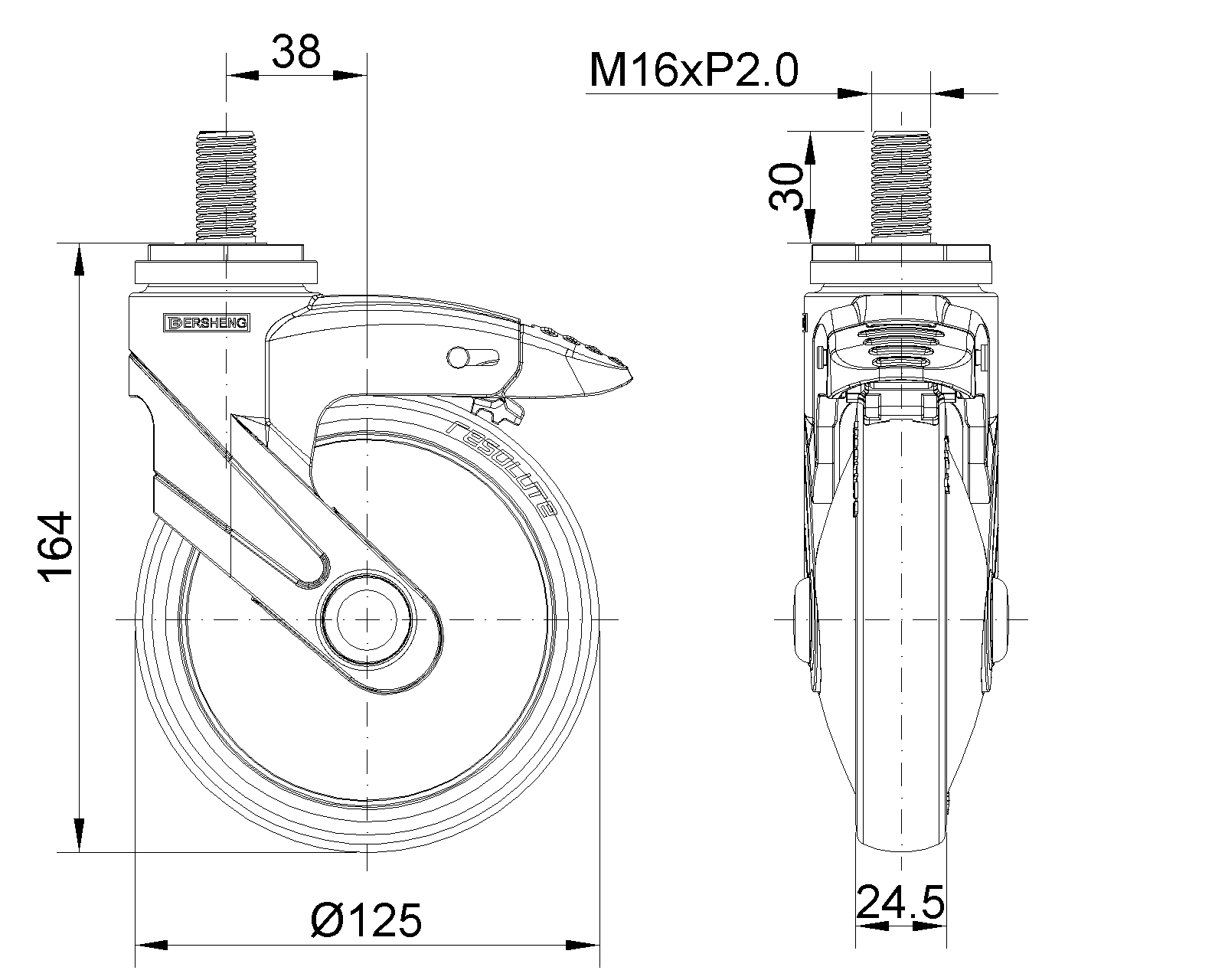 | Bánh xe có hệ thống khóa kép dài, ren M16x30 Bánh xe hoàn thiện màu ngọc trai với cốt thép polyamide và lắp đặt bằng ren Chống gỉ, chống ăn mòn, thẩm mỹ, tiết kiệm và xoay linh hoạt Lõi bánh xe bằng polypropylene chịu va đập, bề mặt bánh xe bằng chất đàn hồi nhiệt dẻo (TPR) Màu xám đậm, vòng bi bánh xe - vòng bi cầu chính xác |