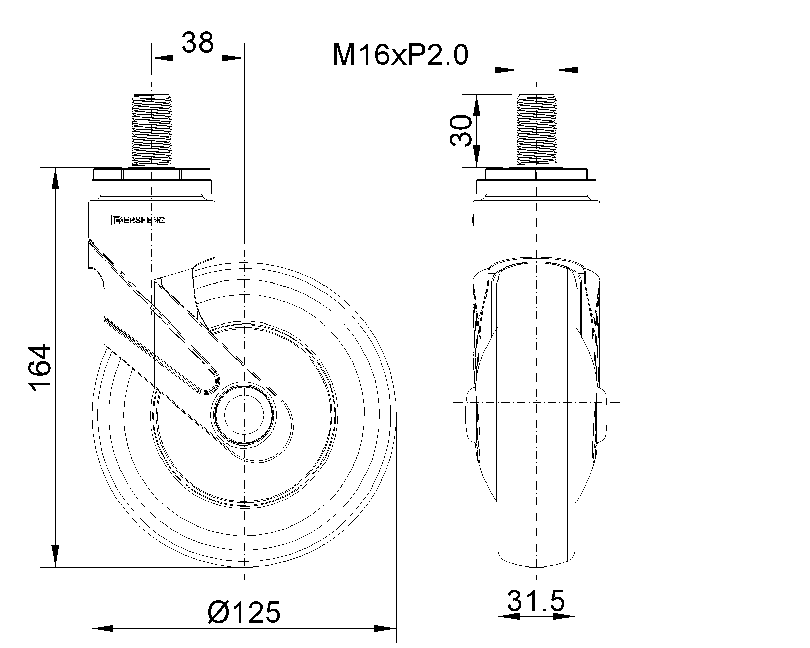| Bánh xe PPR Toàn hiệu (Trục trung xanh xám xám đậm) Đường kính bánh×Chiều rộng bánh 125×31mm |