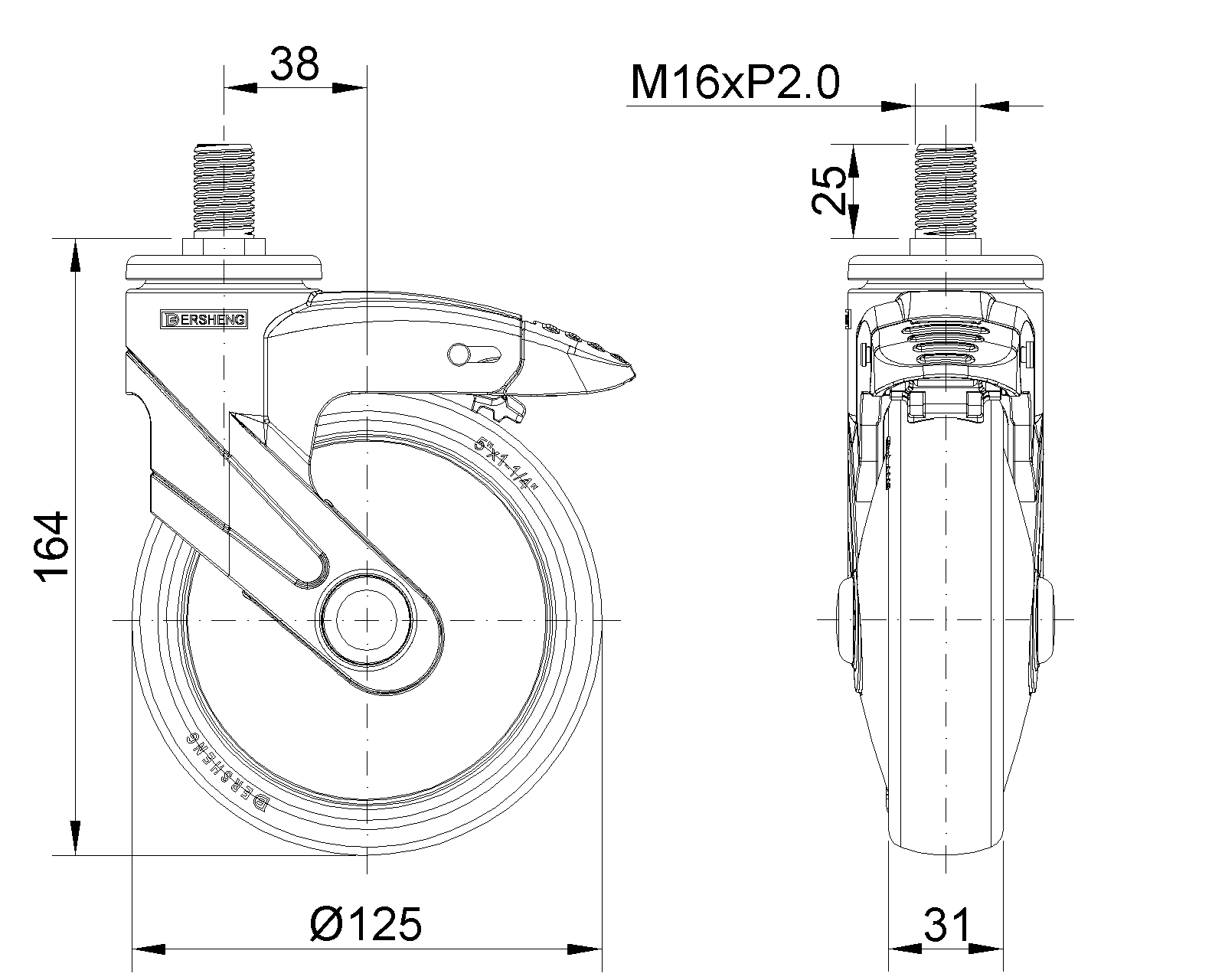 Bánh xe dài loại phanh kép, hệ thống khóa, ren M16x25 Chân màu ngọc trai làm bằng cốt thép polyamide, lắp đặt bằng ren Chống gỉ, chống ăn mòn, đẹp, tiết kiệm và xoay linh hoạt Lõi bánh xe bằng polypropylene chịu va đập, bề mặt bánh xe bằng chất đàn hồi nhiệt dẻo (TPR) Màu xám đậm, loại ống trung tâm bánh xe |