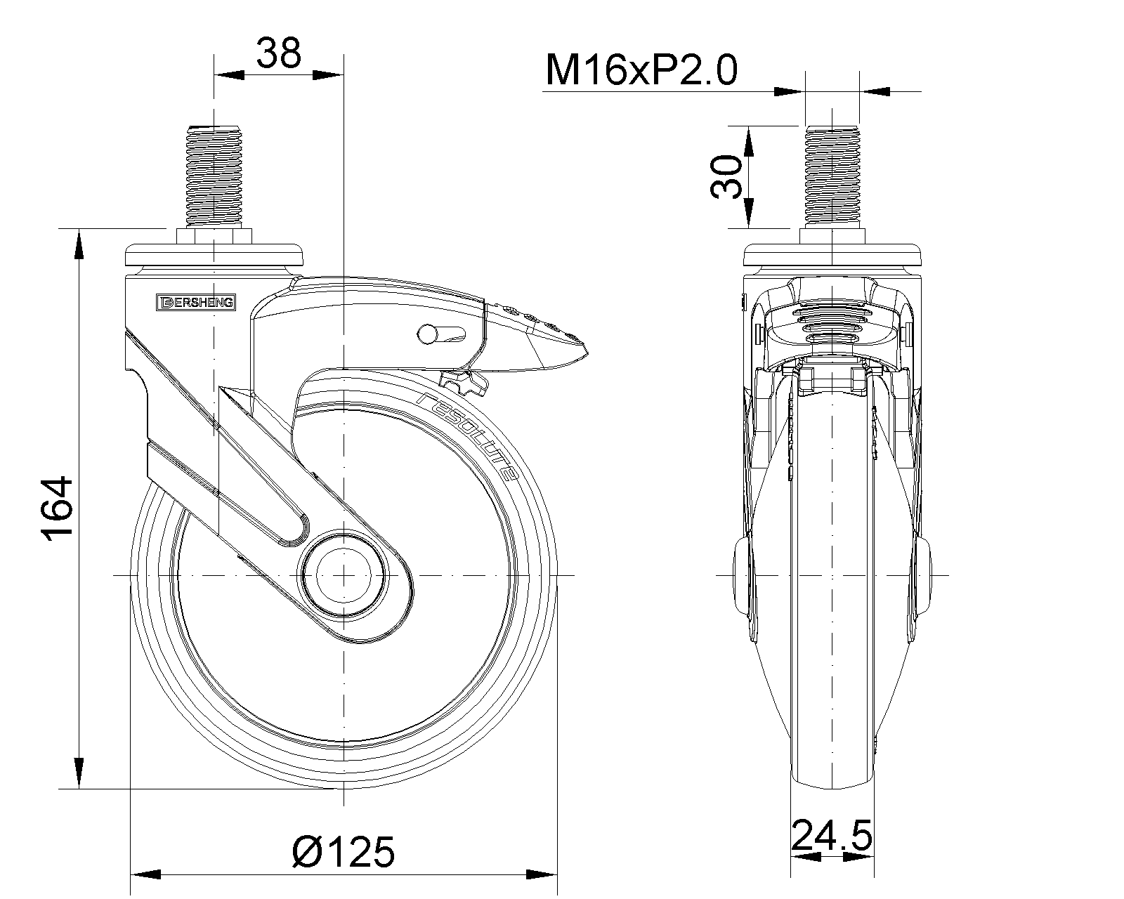 Bánh xe dài loại phanh kép, hệ thống khóa, ren M16x30 Chân màu ngọc trai làm bằng cốt thép polyamide, lắp đặt bằng ren Chống gỉ, chống ăn mòn, đẹp, tiết kiệm và xoay linh hoạt Lõi bánh xe bằng polypropylene chịu va đập, bề mặt bánh xe bằng chất đàn hồi nhiệt dẻo (TPR) Màu xám đậm, loại ống tâm bánh xe |