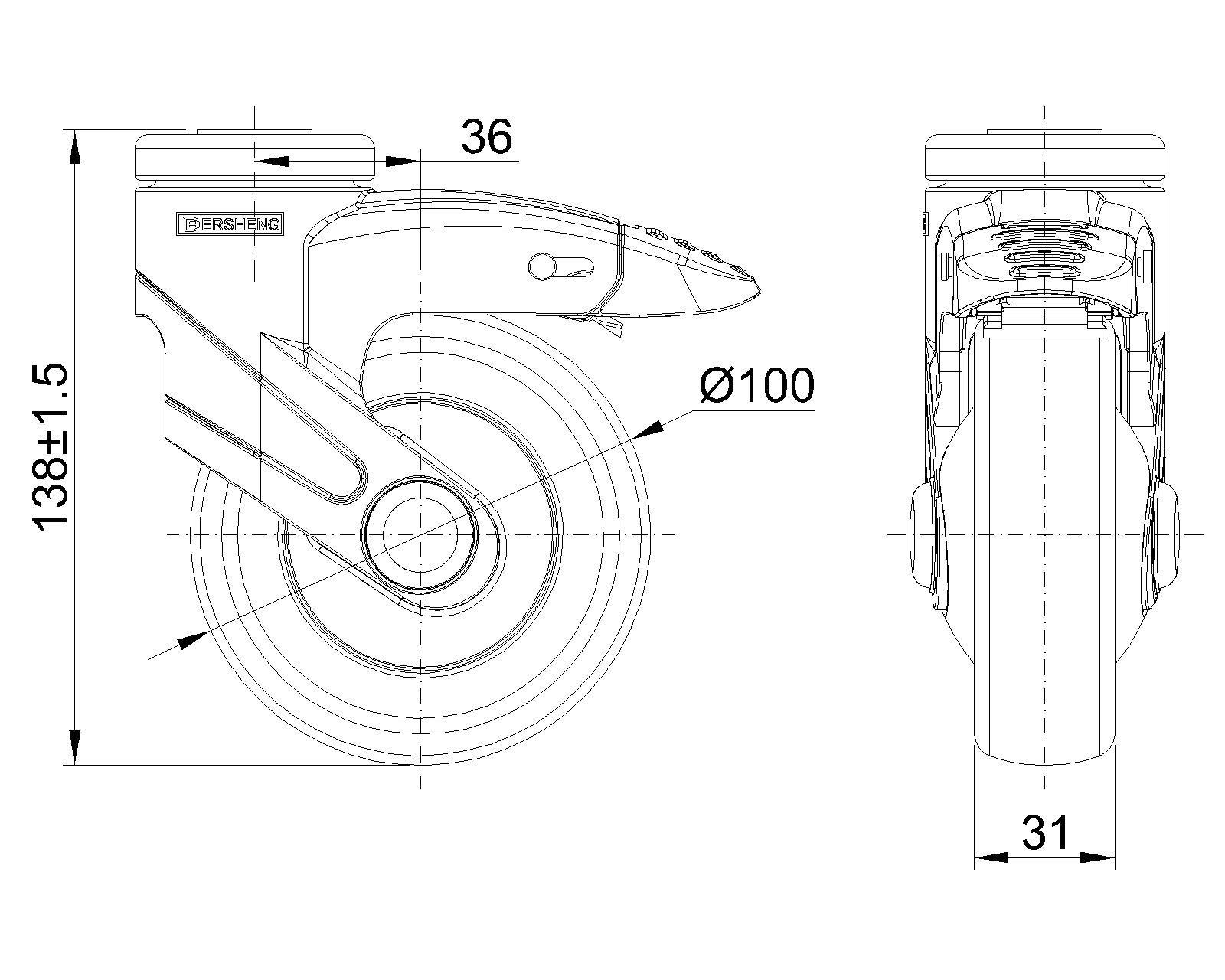 | (màu xanh xám)Đường kính bánh xe đầy đủ × chiều rộng bánh xe 100 x 31mm |