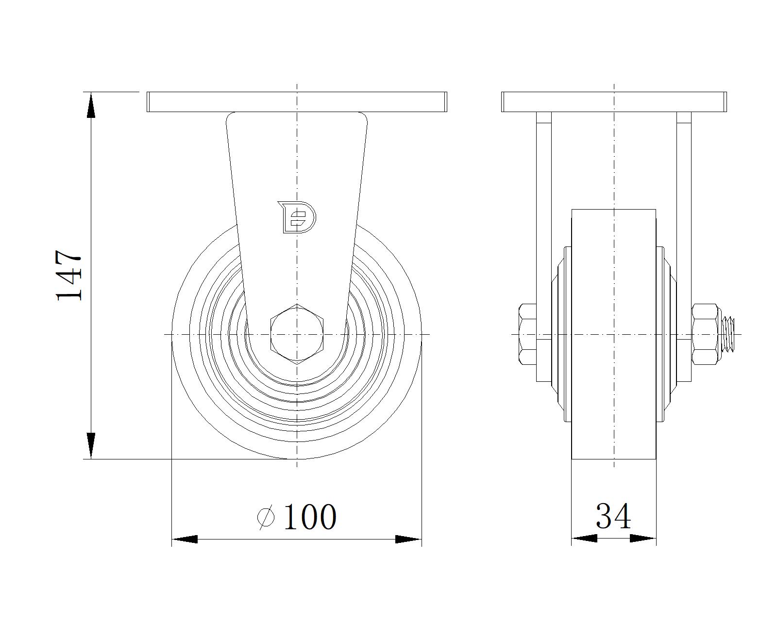 | 固定式脚轮,焊接钢板架