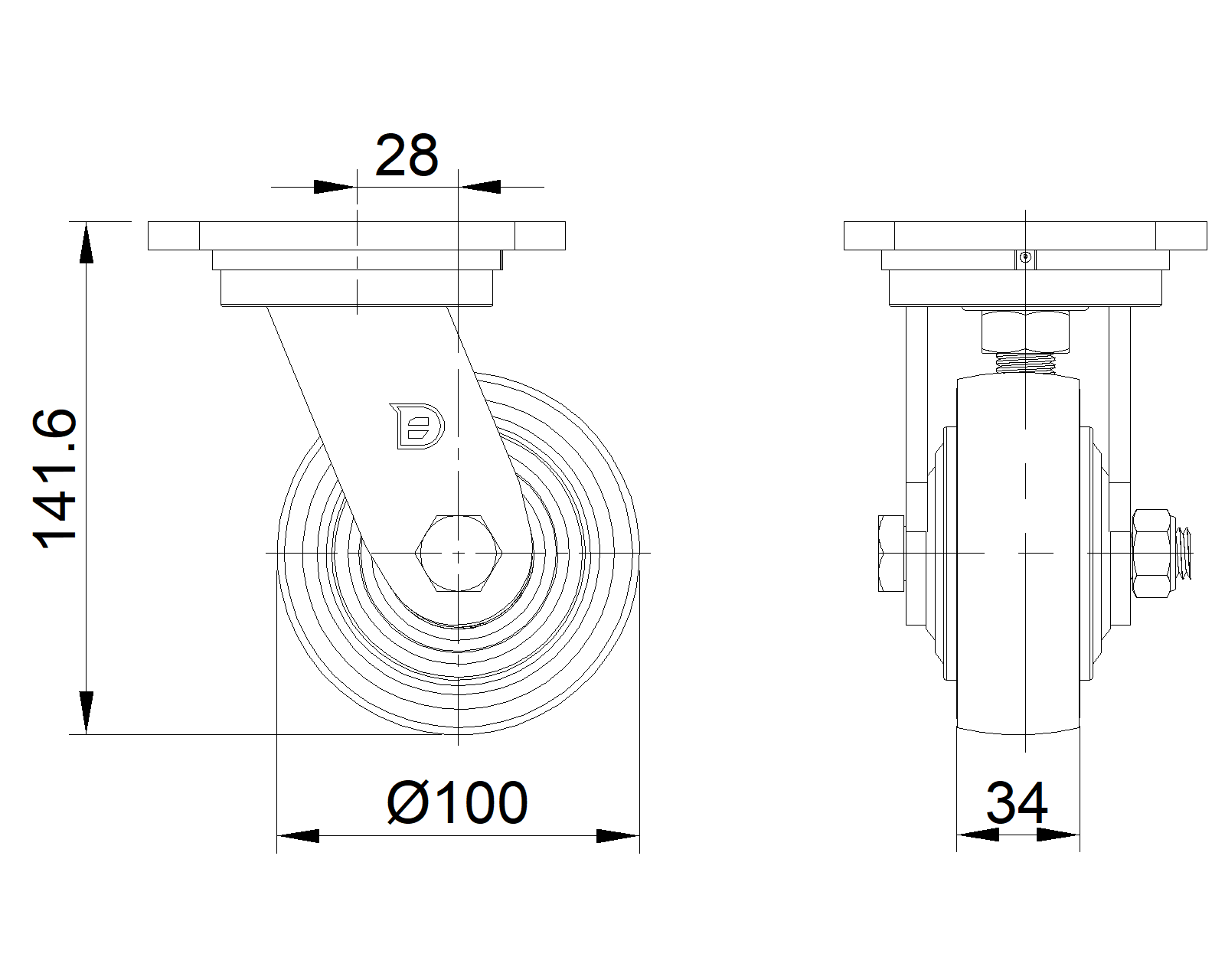 | QPU轮(褐弧) 轮径 × 轮宽 100 x 34mm |
