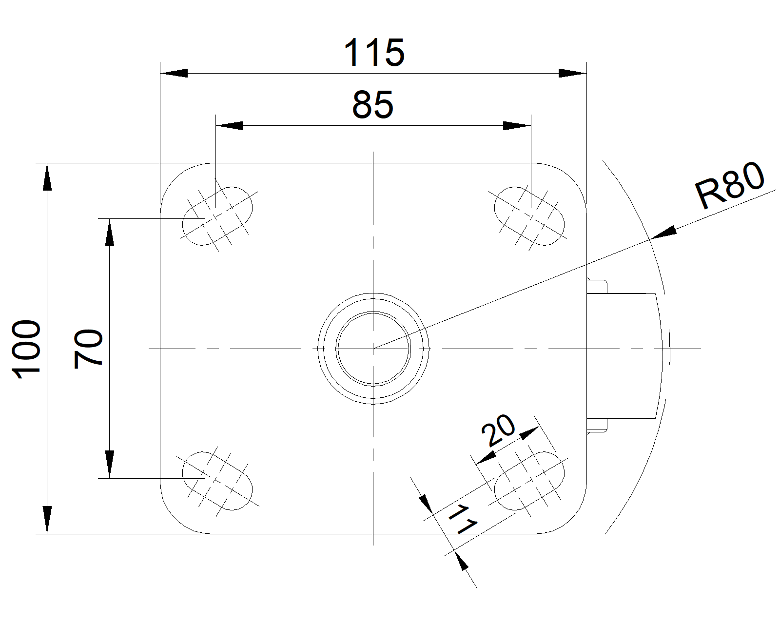 底板式安装装置,孔距85x70 铸铁制轮芯,高品质聚氨酯轮面,铣褐色 轮子轴承—精密滚珠 |