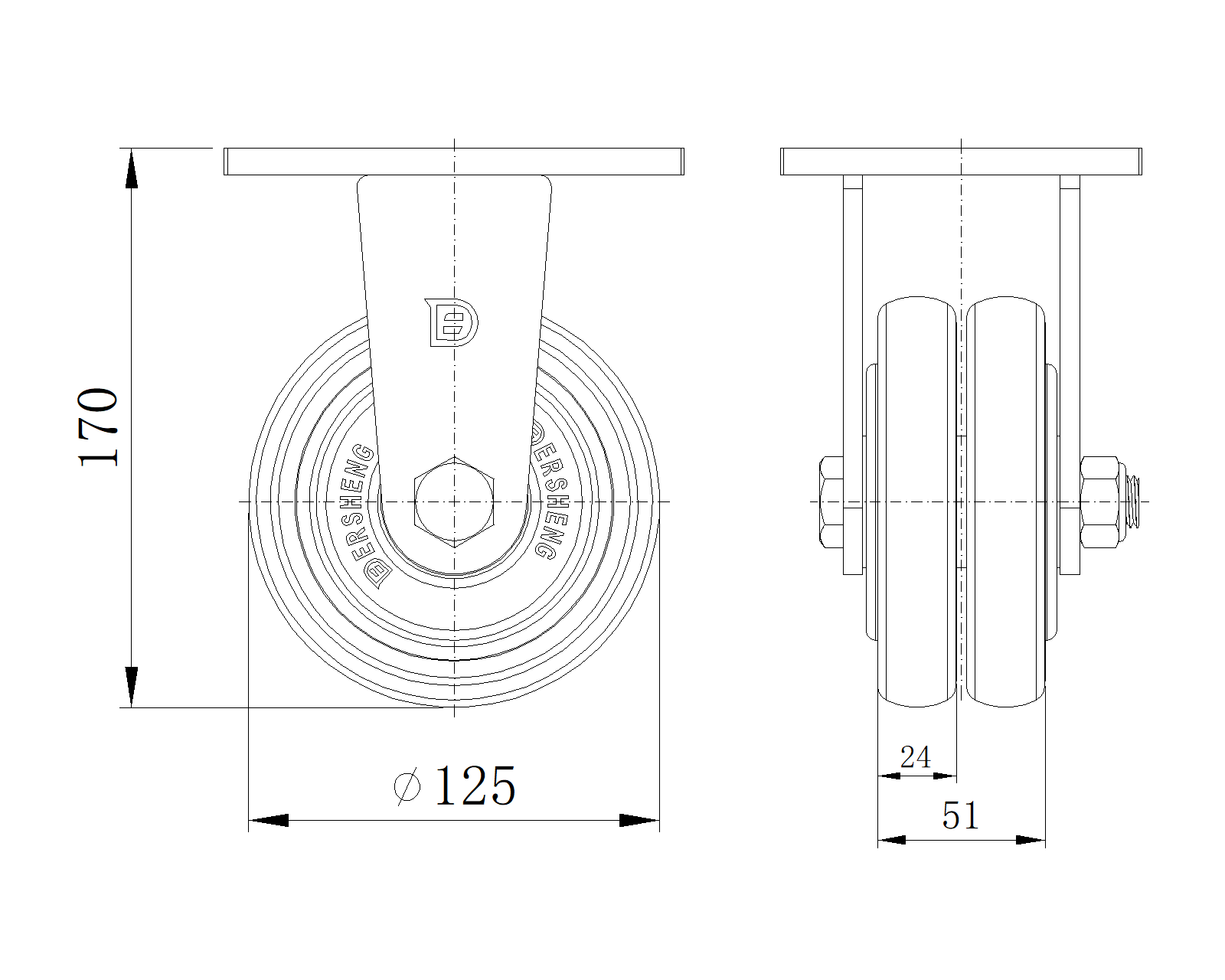 | ZQPU轮(褐弧)轮径×轮宽 125 x 24(51)mm |