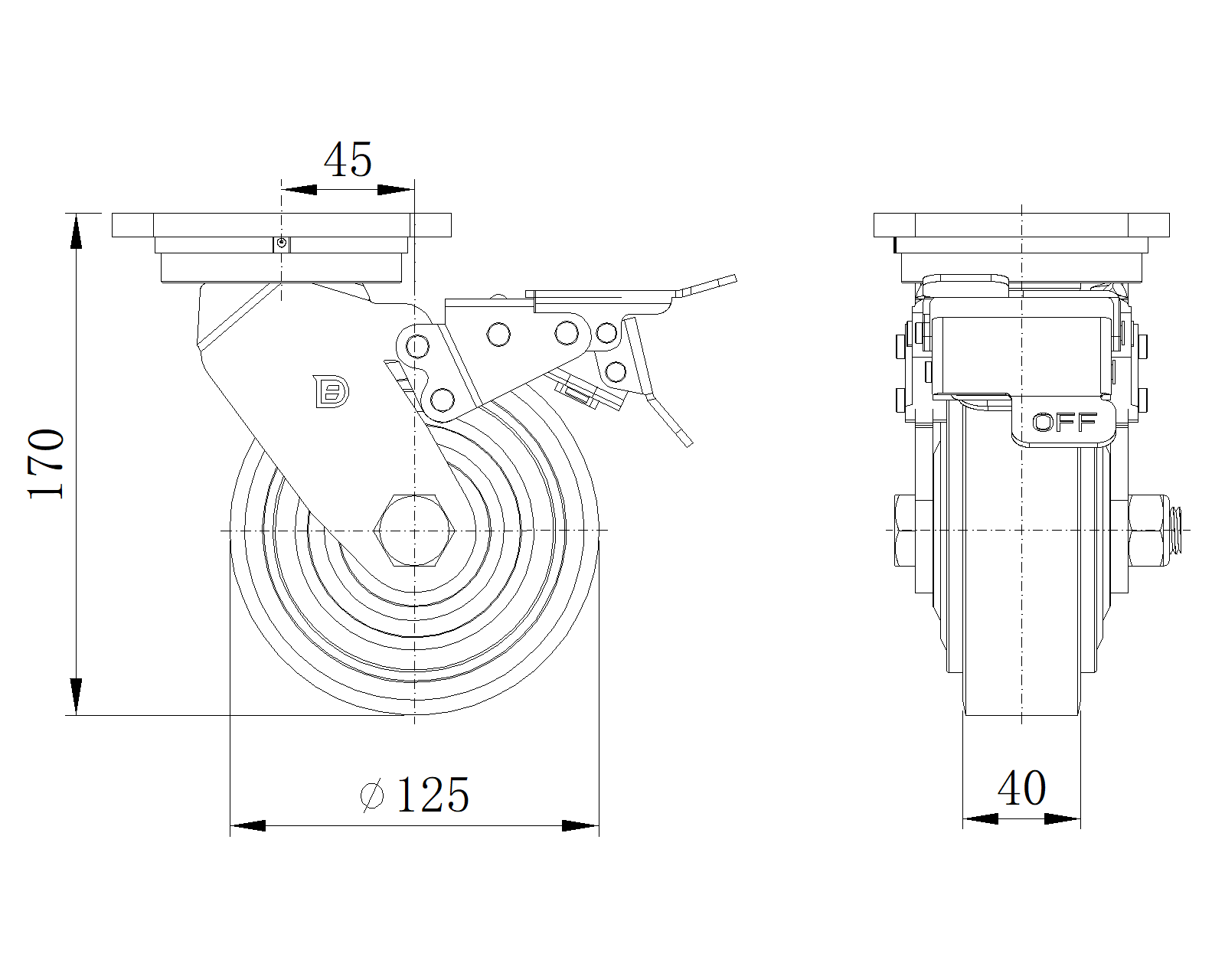 | PU轮(红平) 轮径 × 轮宽 125 × 40mm |
