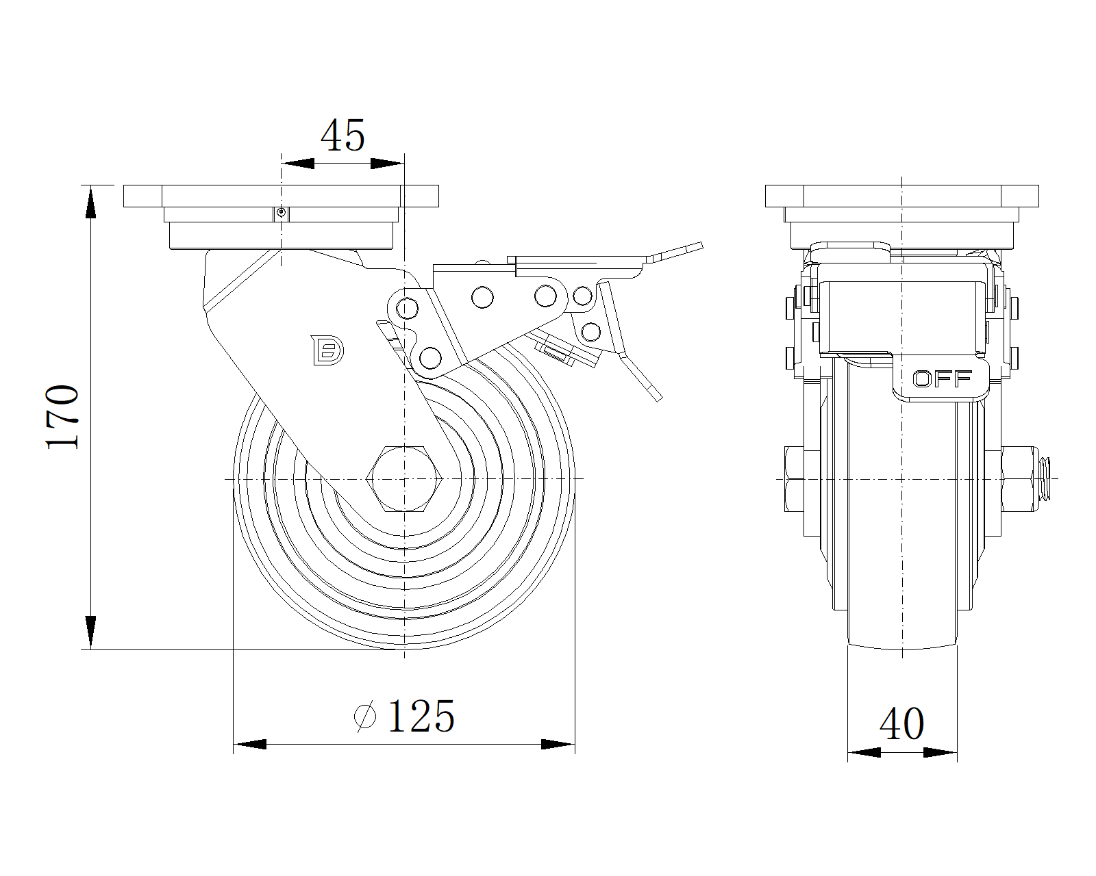 | QPU轮(褐弧) 轮径 × 轮宽 125 x 40mm |
