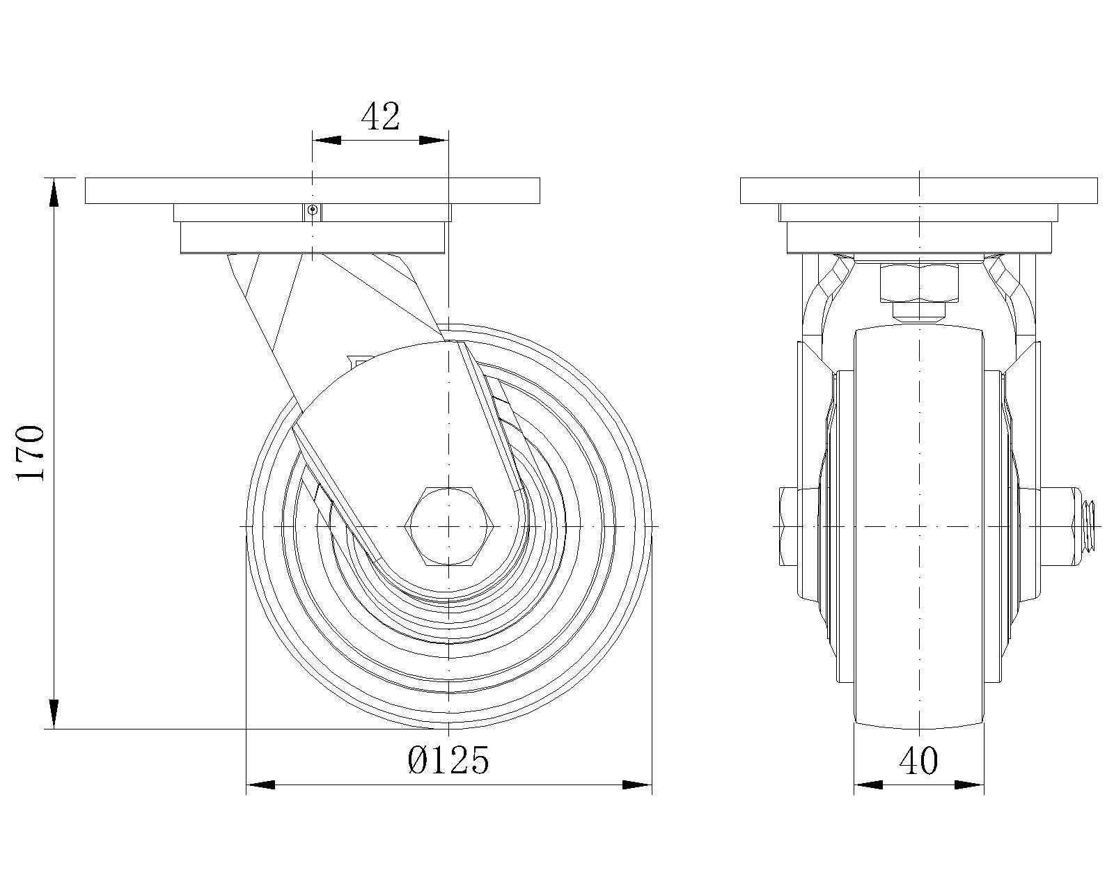 | PU轮(红弧)轮径×轮宽 125×40mm |