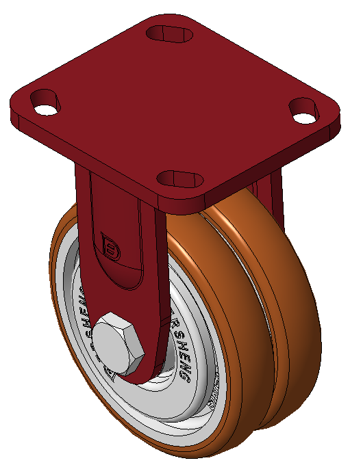 配有前煞式,锁定系统的脚轮,焊接钢板架 表面红漆,底板式安装装置,孔距115x100 铸铁制轮芯,高品质聚氨酯轮面,铣褐色 轮子轴承—特製的精密滚珠,降低运转阻力 ZQPU双轮,符合人体工学,更容易啟动及转动 |