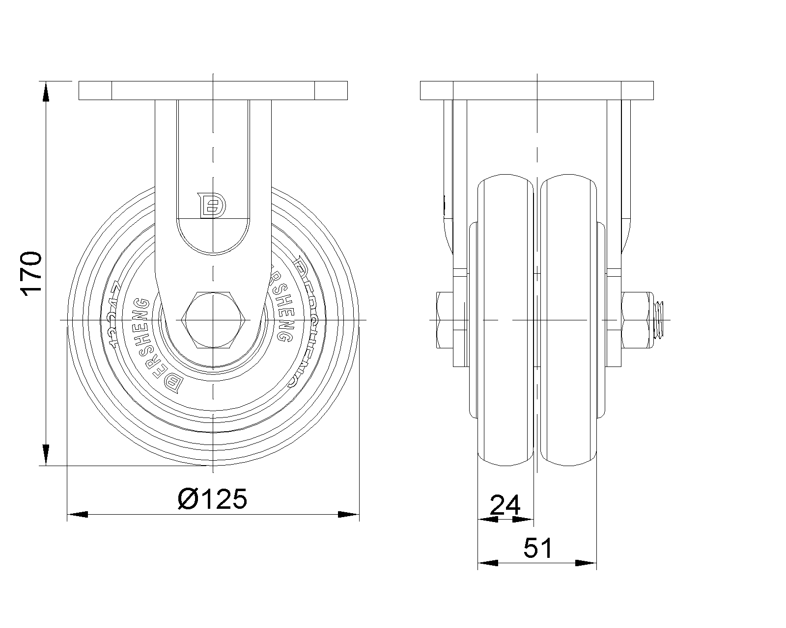 | ZQPU轮(褐弧)轮径×轮宽 125 x 24(51)mm |