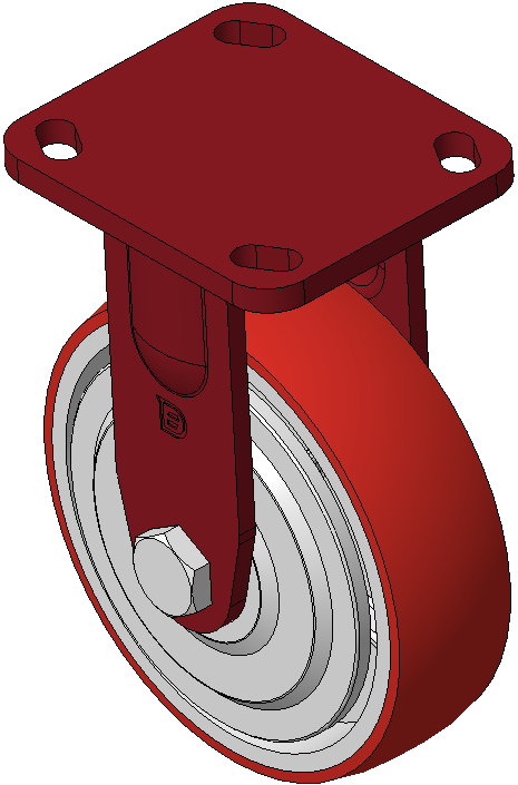表面喷红漆,底板式安装装置, 孔距85x70 铸铁制轮芯,高品质聚氨酯轮面,铣红色 轮子轴承—精密滚珠,配特制防缠绕轮盖 |
