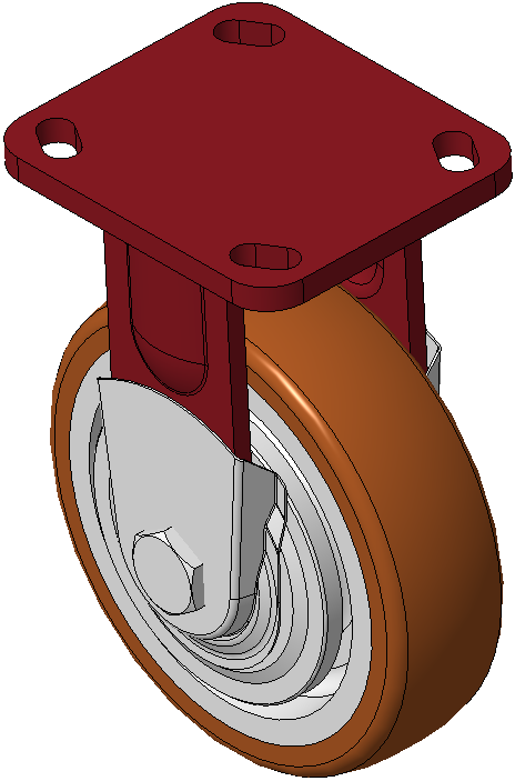 表面红漆,底板式安装装置,孔距85x70 铸铁制轮芯,高品质聚氨酯轮面,铣褐色 轮子轴承—精密滚珠,配特制防缠绕轮盖 |