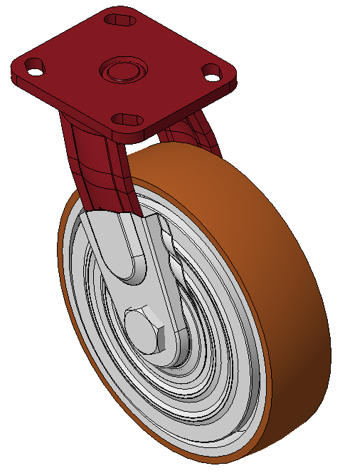 活动式脚轮,焊接钢板架 表面红漆,底板式安装装置, 孔距85x70 铸铁制轮芯,高品质聚氨酯轮面,铣褐色 轮子轴承—精密滚珠,配特制防缠绕轮盖 |