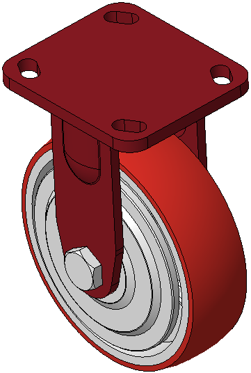 底板式安装装置,孔距85 x 70 铸铁制轮芯,高品质聚氨酯轮面,铣红色 轮子轴承—精密滚珠 |