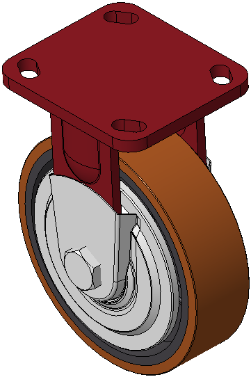 底板式安装装置, 孔距85 x 70 铸铁制轮芯,高品质聚氨酯轮面,铣褐色 轮子轴承—精密滚珠,配特制防缠绕轮盖 |