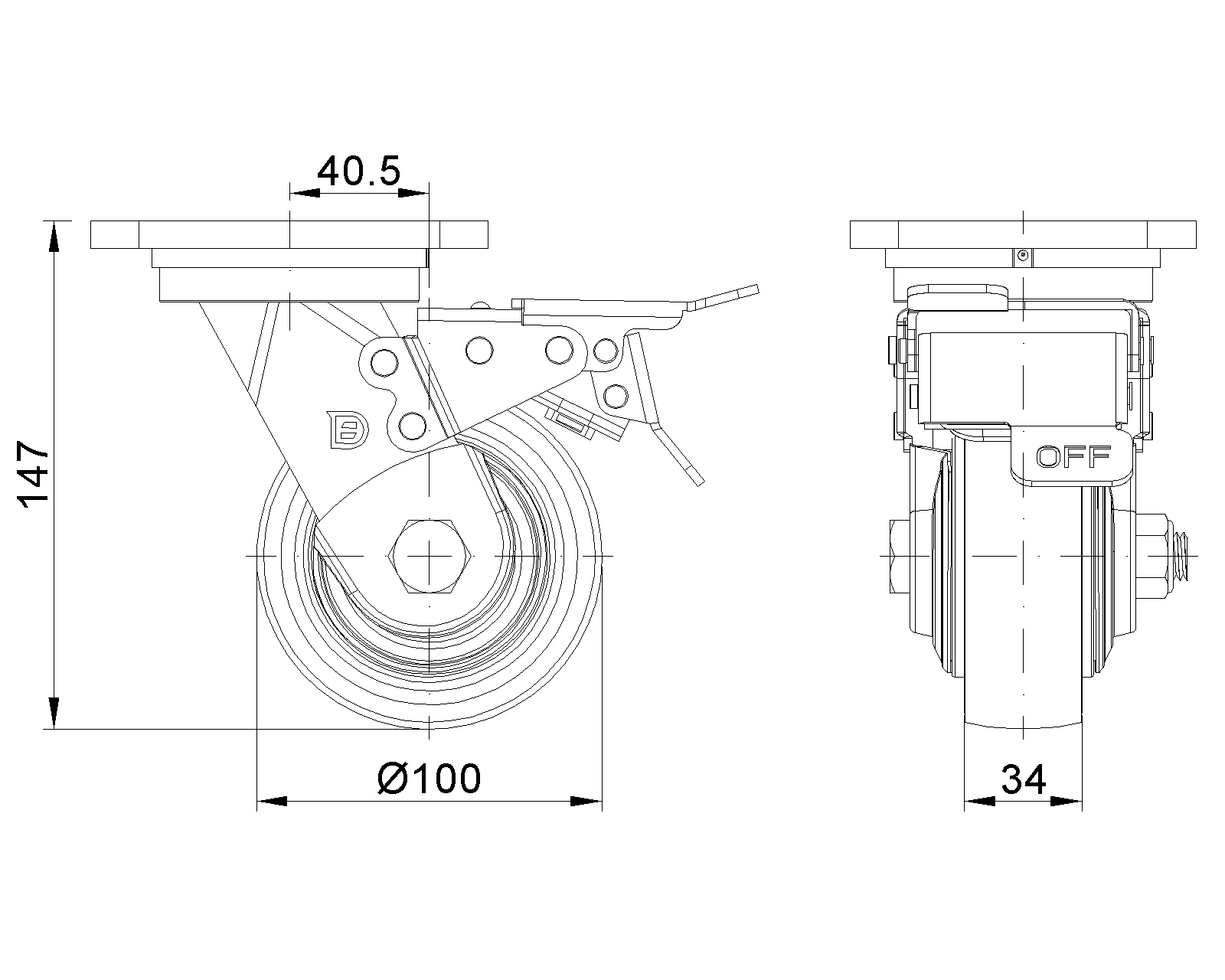 | Bánh xe QPU (hồ quang nâu) đường kính bánh xe × chiều rộng bánh xe 100 x 34mm |