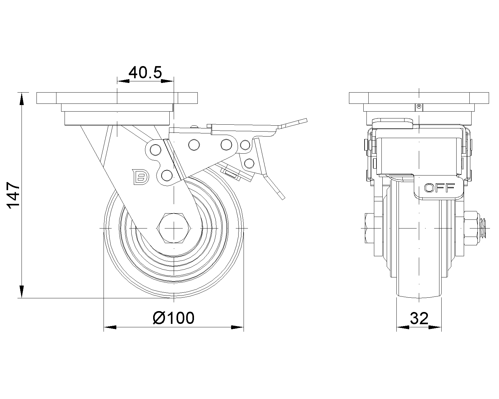 | Bánh xe MRC (trong suốt) Đường kính bánh xe × Chiều rộng bánh xe 100 x 32mm |