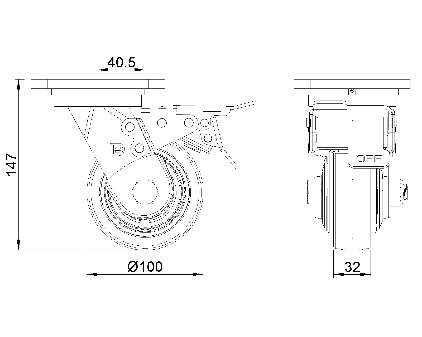 | Bánh xe MRC (trong suốt) Đường kính bánh xe × Chiều rộng bánh xe 100 x 32mm |