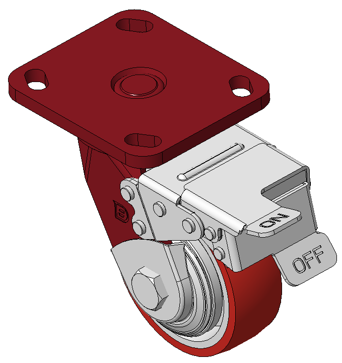 Bề mặt phun sơn đỏ, thiết bị lắp đặt tấm đáy, khoảng cách lỗ 85x70 Lõi bánh xe bằng gang, bề mặt bánh xe bằng polyurethane chất lượng cao, phay màu đỏ Vòng bi bánh xe—vòng bi chính xác với nắp bánh xe chống cuộn đặc biệt |
