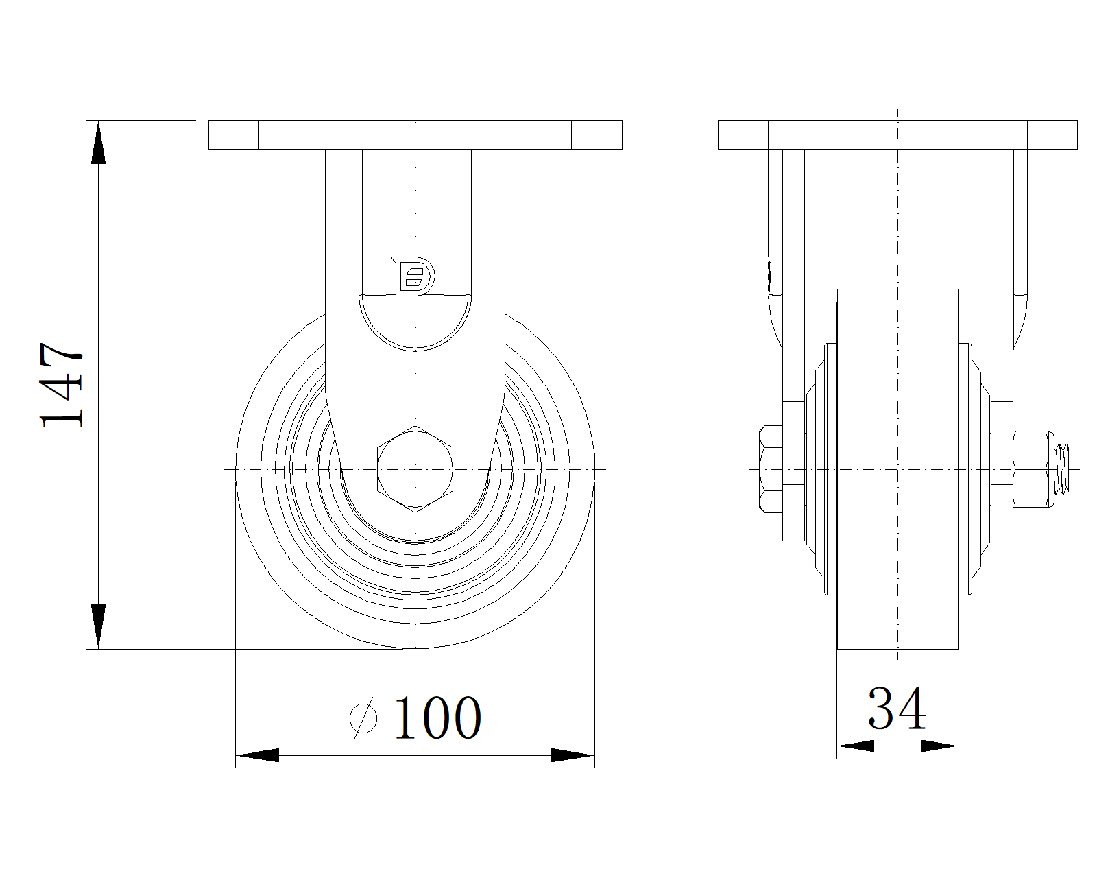| Bánh xe QPU (nâu phẳng) Đường kính bánh xe × Chiều rộng bánh xe 100 x 34mm |