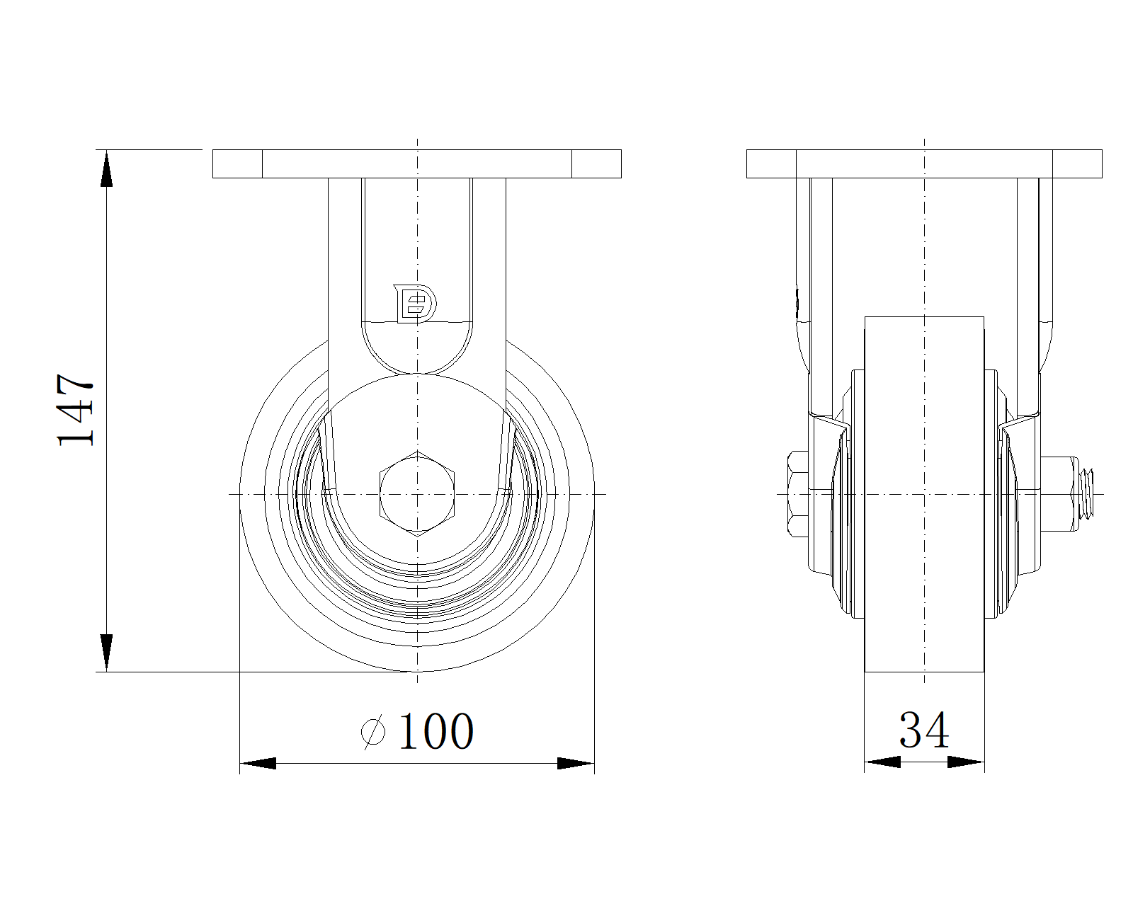| Bánh xe QPU (nâu phẳng) Đường kính bánh xe × Chiều rộng bánh xe 100 x 34mm |