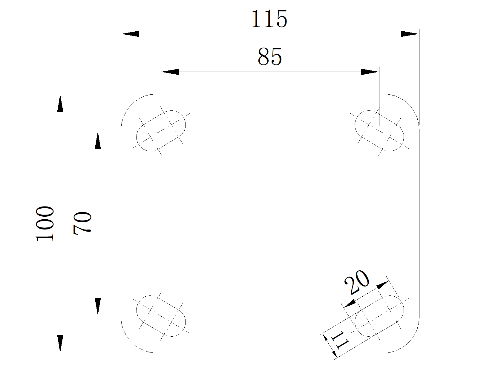 Quy cách tấm lắp 115 x 100mm khoảng cách các lỗ trên tấm nền 85 x 70mm Khoảng cách các lỗ lắp 20 x 11mm Tổng chiều cao 147mm Độ cứng 85±5° Shore A Tải trọng (động) 200kgs |