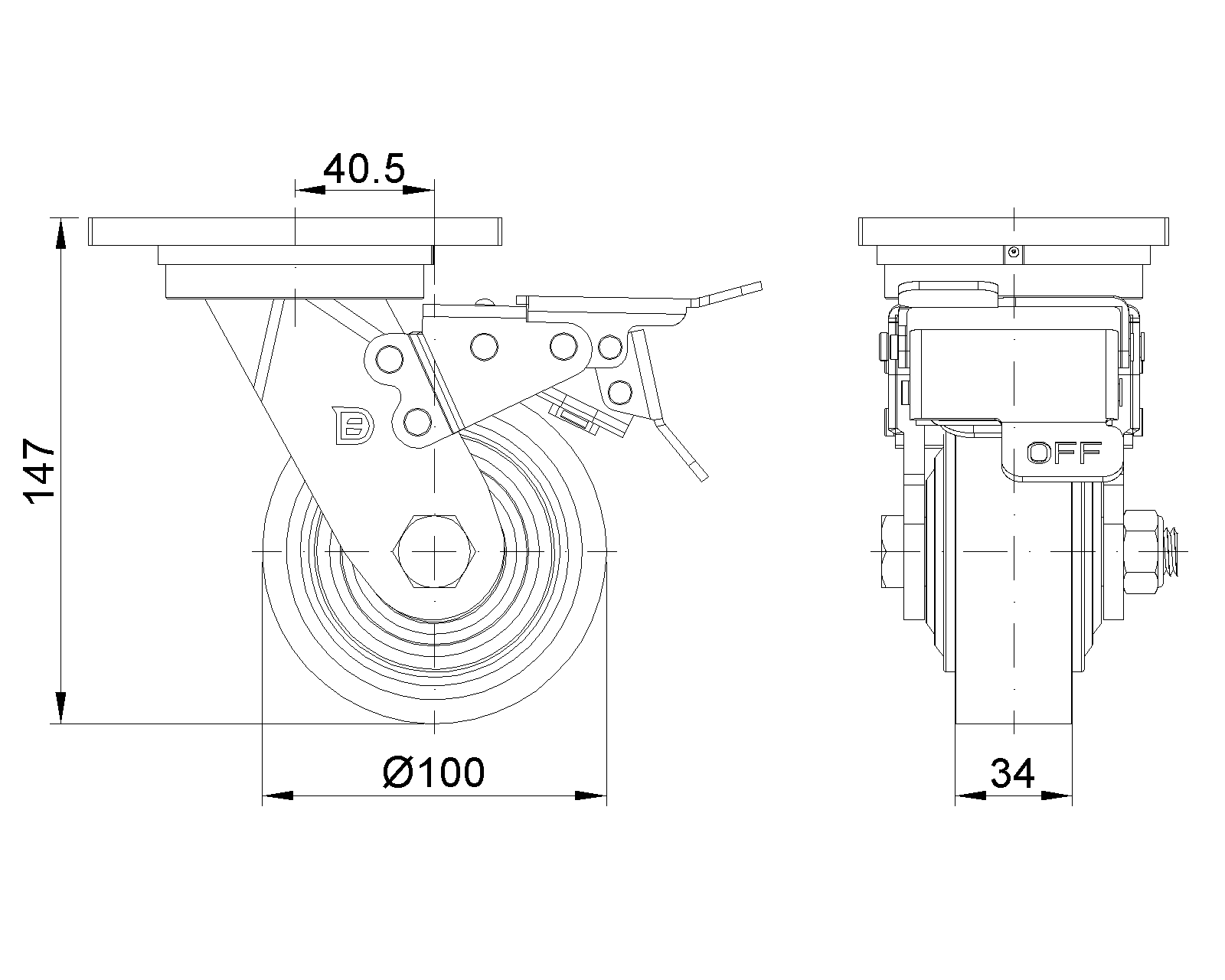 | Bánh xe PU (đỏ phẳng) Đường kính bánh xe × Chiều rộng bánh xe 100 x 34mm |