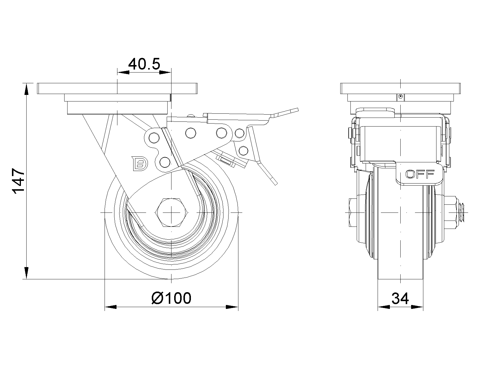 | Bánh xe PU (đỏ phẳng) Đường kính bánh xe × Chiều rộng bánh xe 100 x 34mm |