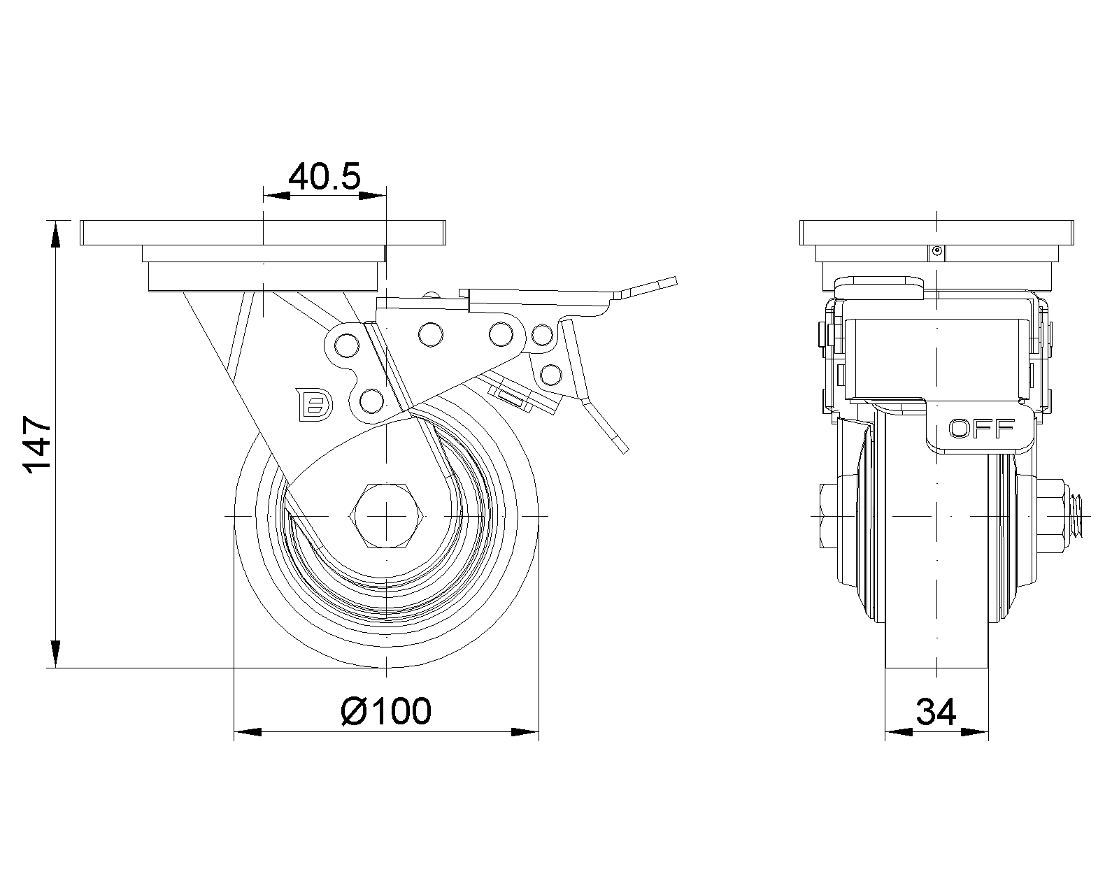 | Bánh xe QPU (nâu phẳng) Đường kính bánh xe × Chiều rộng bánh xe 100 x 34mm |