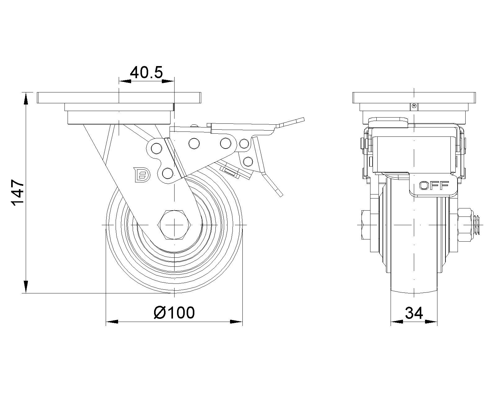 | Bánh xe QPU (hồ quang nâu) đường kính bánh xe × chiều rộng bánh xe 100 x 34mm |