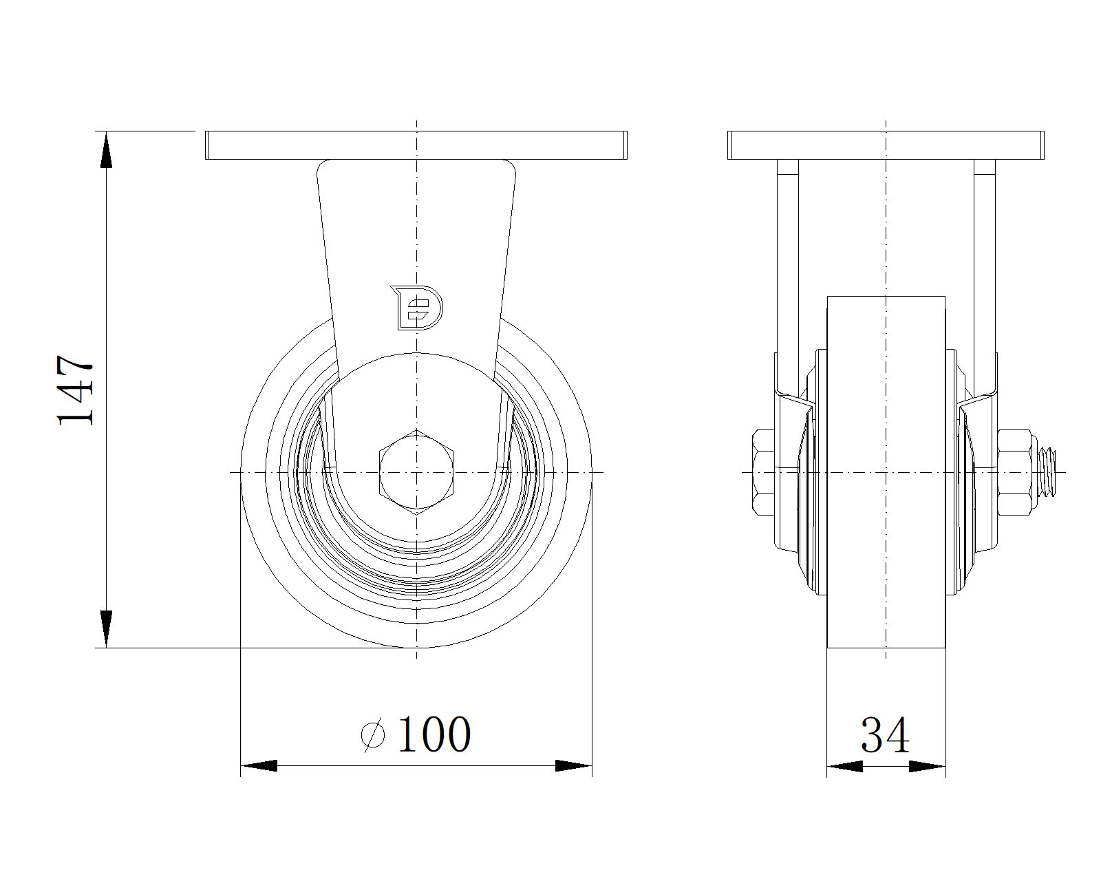 đơn vị mét đế quốc Đường kính bánh xe 100mm Chiều rộng bánh xe 34mm |