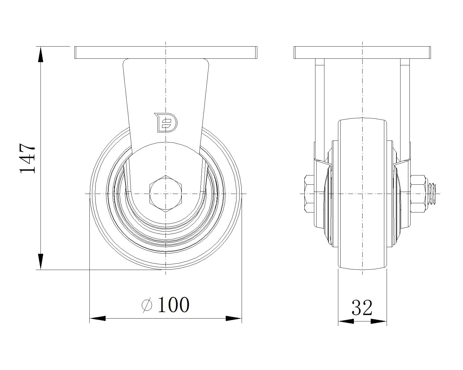 đơn vị mét đế quốc Đường kính bánh xe 100mm Chiều rộng bánh xe 32mm |