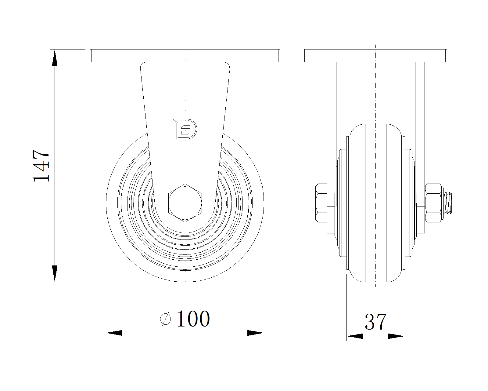 | Kéo NBR Wheel (Mill Raw) Đường kính bánh xe × Chiều rộng bánh xe 100 x 37mm |