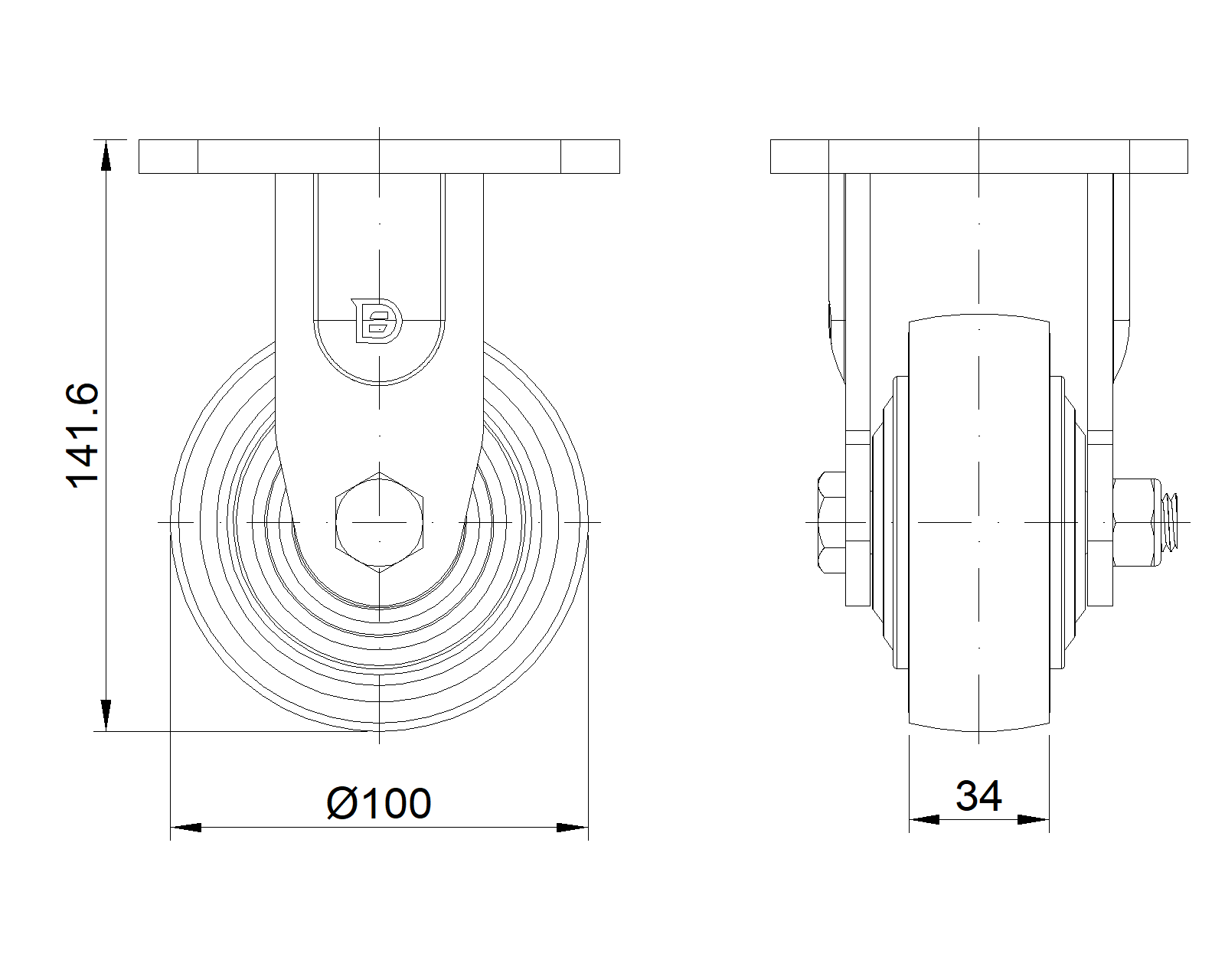 | Bánh xe QPU (hồ quang nâu) đường kính bánh xe × chiều rộng bánh xe 100 x 34mm |