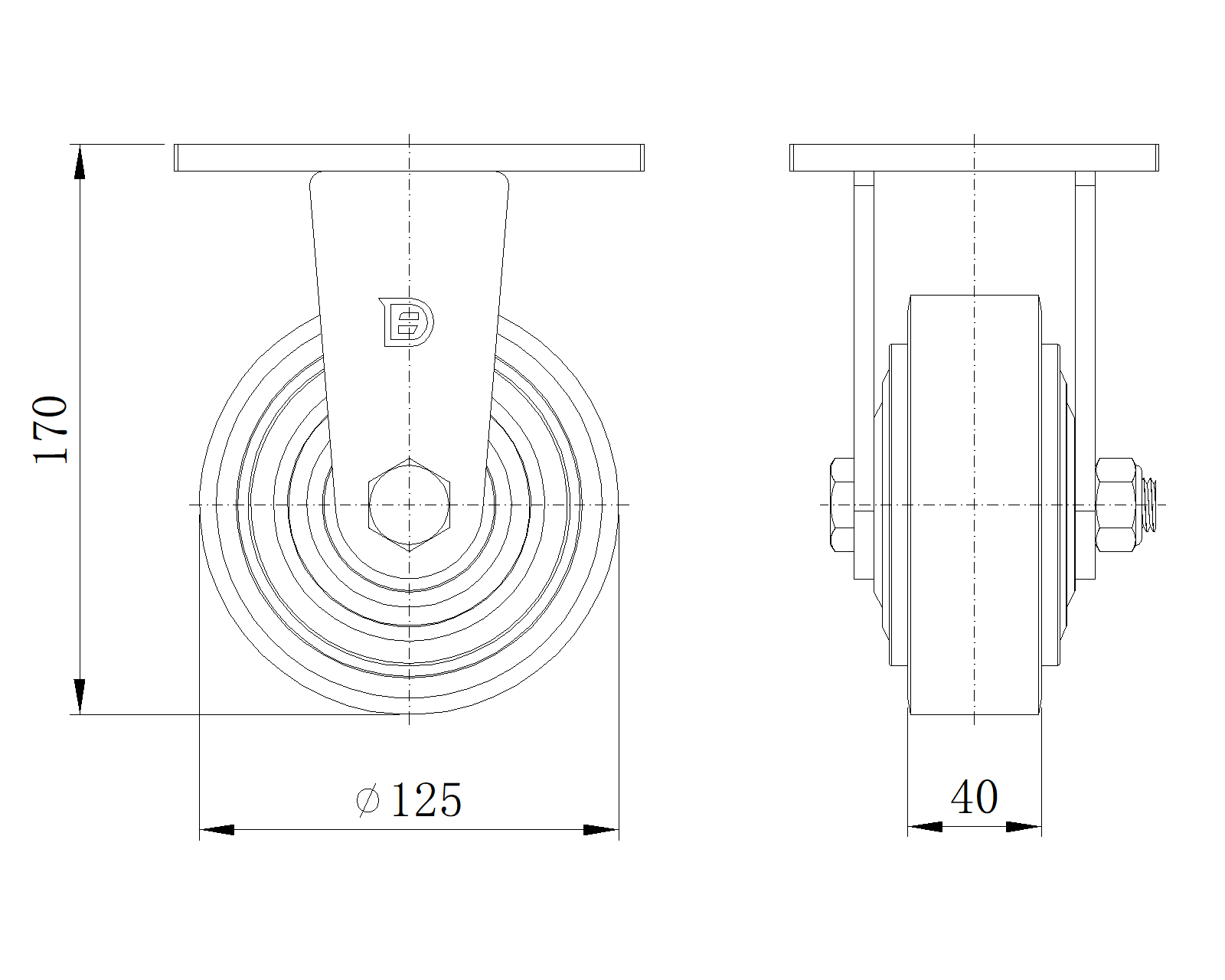 | Bánh xe PU(bánh phẳng màu đỏ) đường kính bánh xe × chiều rộng bánh xe là 125 × 40 mm. |