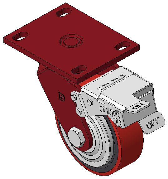 Bề mặt phun sơn đỏ, thiết bị lắp đặt tấm đáy, khoảng cách lỗ 110x75 Lõi bánh xe bằng gang, bề mặt bánh xe bằng polyurethane chất lượng cao, phay màu đỏ Vòng bi bánh xe—vòng bi bi chính xác |