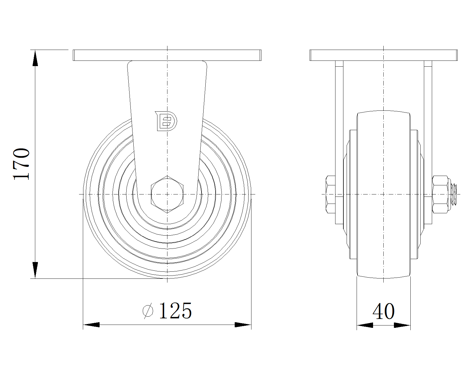 đơn vị mét đế quốc Đường kính bánh xe 125mm Chiều rộng bánh xe 40mm |