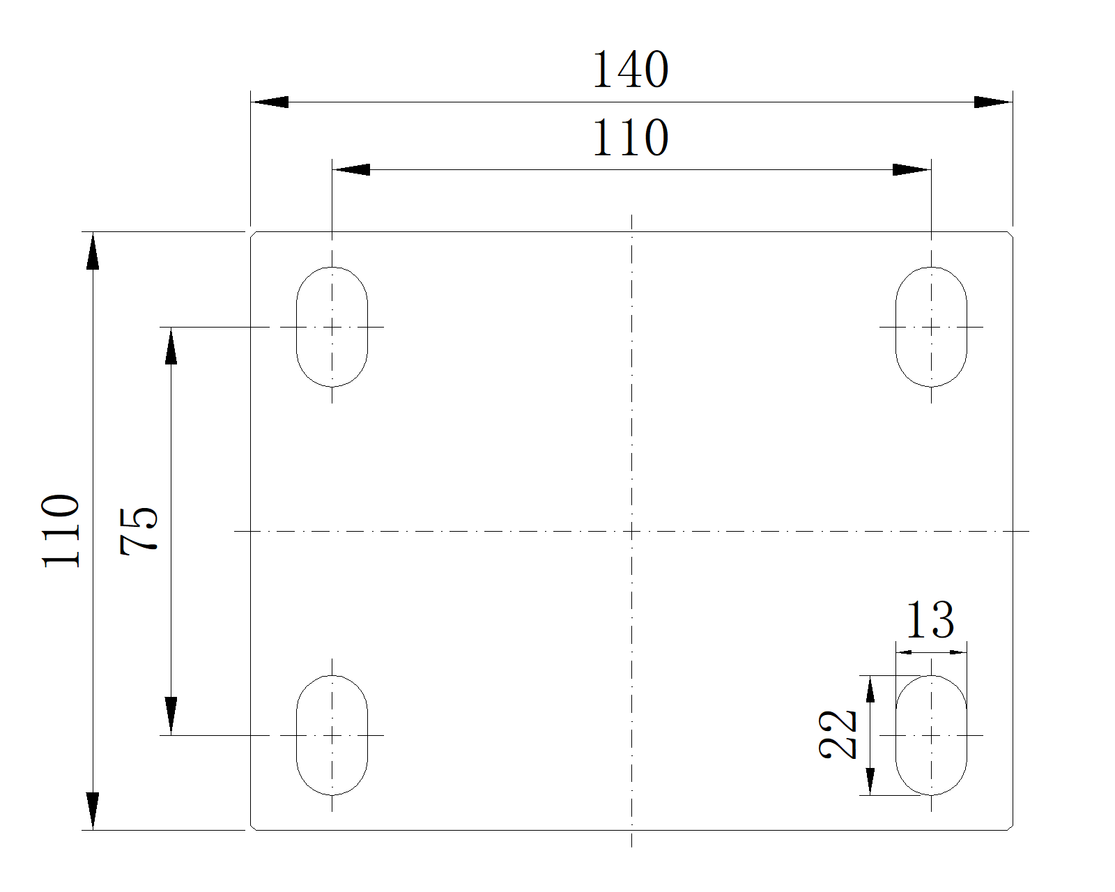 Quy cách tấm lắp 140 x 110mm khoảng cách các lỗ trên tấm nền 110x75mm Khoảng cách các lỗ lắp 22 x 13mm Tổng chiều cao 170mm Độ cứng 92±5° Shore A Tải trọng (động) 450kgs |