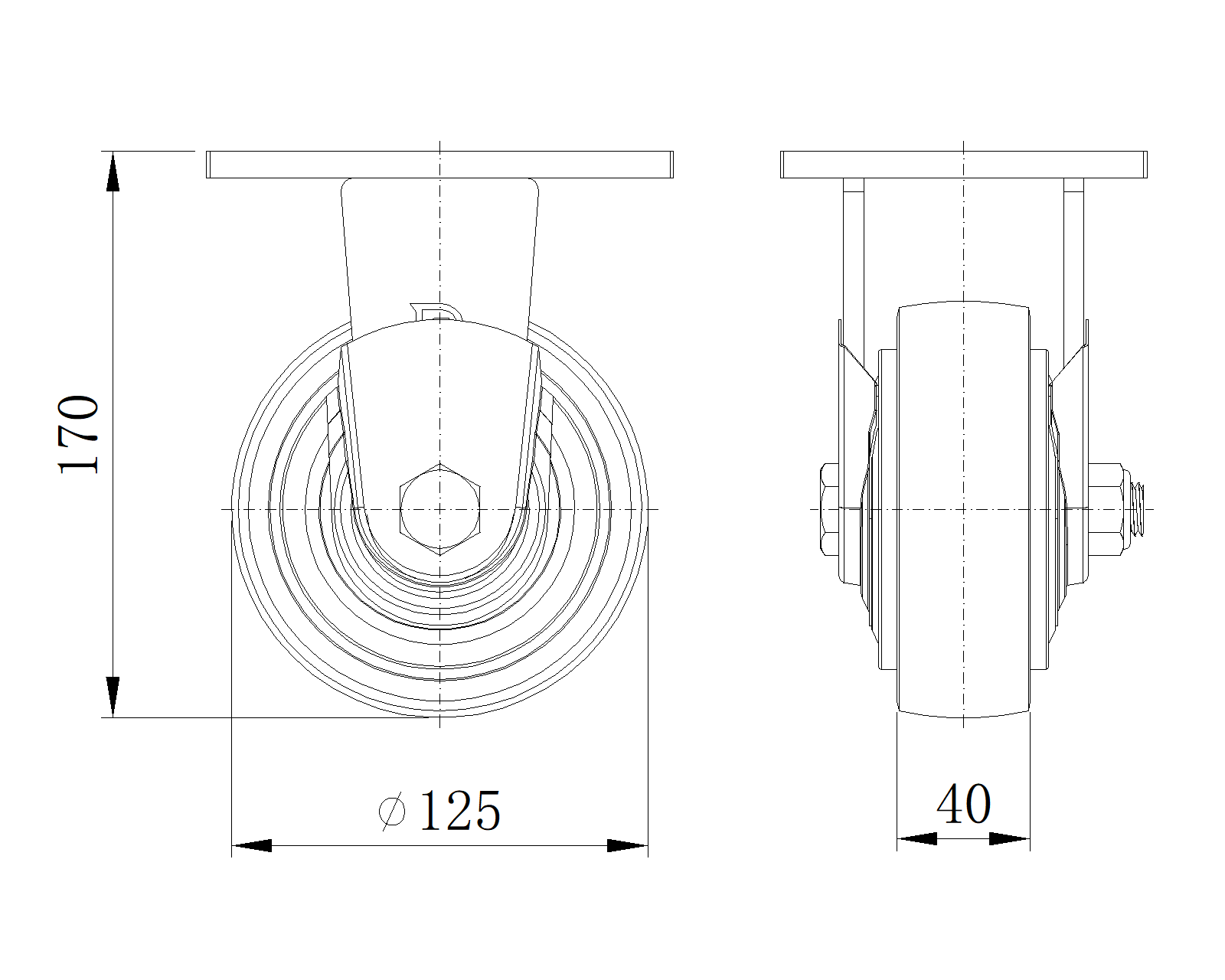 đơn vị mét đế quốc Đường kính bánh xe 125mm Chiều rộng bánh xe 40mm |