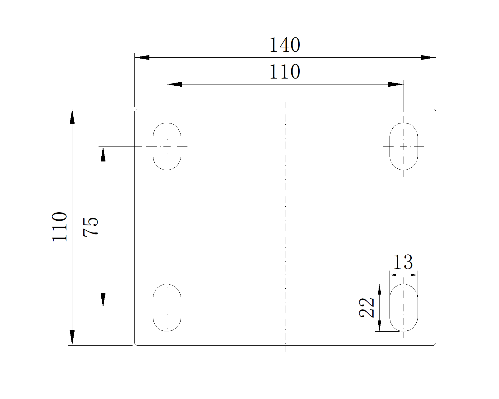 Quy cách tấm lắp 140 x 110mm khoảng cách các lỗ trên tấm nền 110x75mm Khoảng cách các lỗ lắp 22 x 13mm Tổng chiều cao 170mm Độ cứng 92±5° Shore A Tải trọng (động) 450kgs |