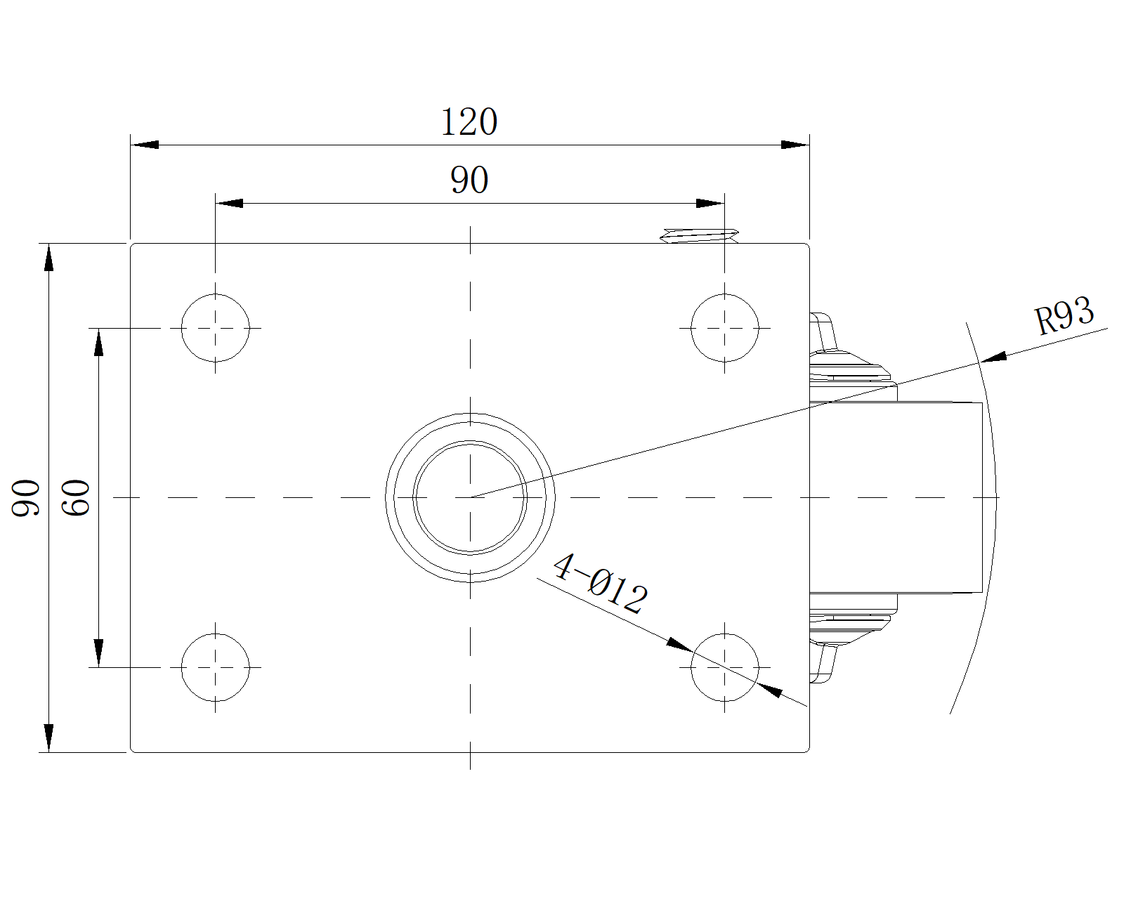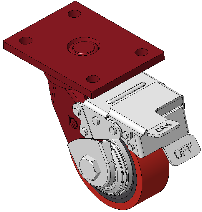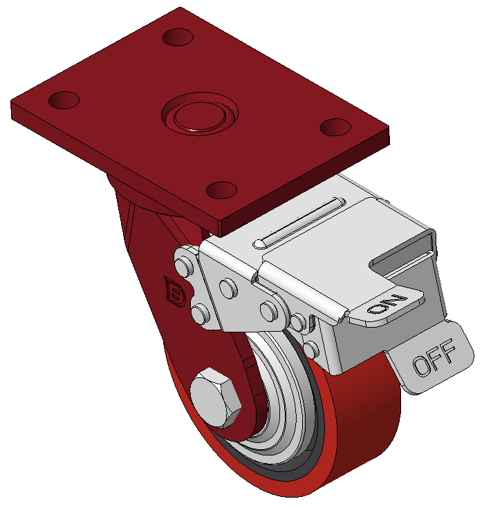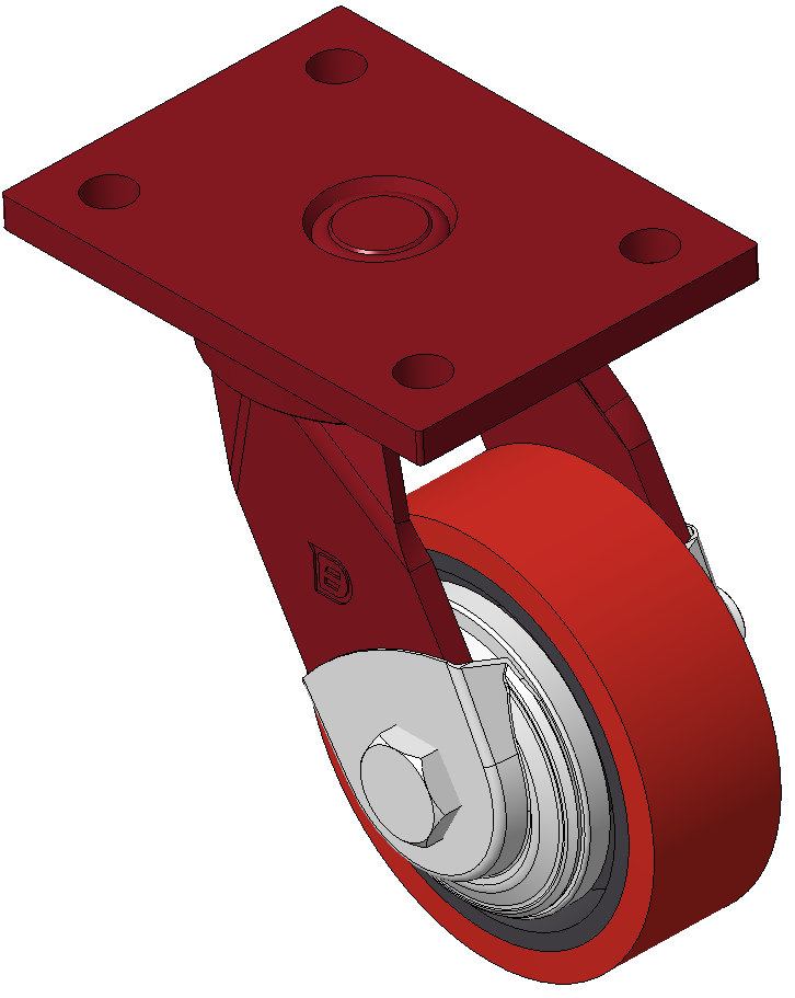Hoàn thiện sơn đỏ, lắp đế, khoảng cách lỗ 90x60 Lõi gang với gai polyurethane chất lượng cao, phay màu đỏ Vòng bi bánh xe—vòng bi chính xác với nắp chống quấn đặc biệt |