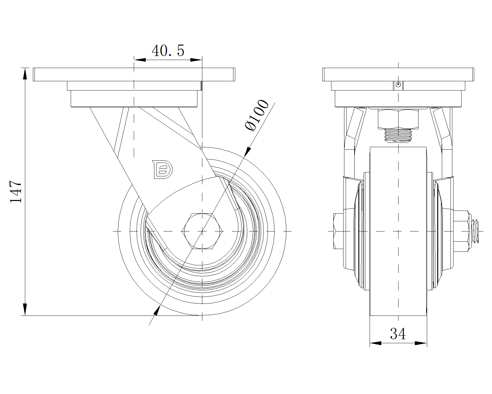 | Bánh xe QPU (nâu phẳng) Đường kính bánh xe × Chiều rộng bánh xe 100 x 34mm |