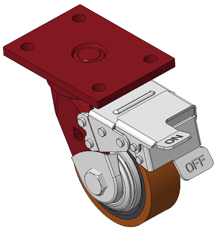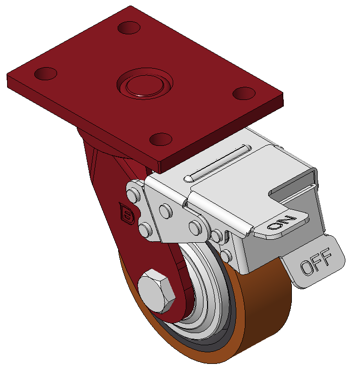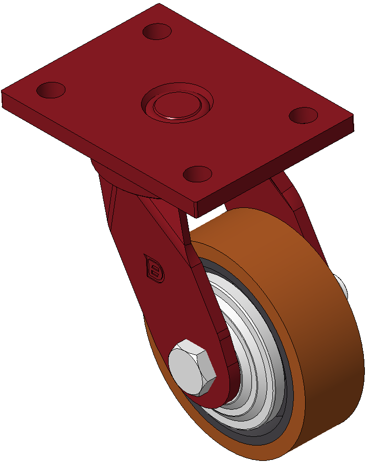Hoàn thiện sơn đỏ, lắp đế, khoảng cách lỗ 90x60 Lõi gang với gai polyurethane chất lượng cao, phay màu nâu Vòng bi bánh xe—vòng bi chính xác với nắp chống quấn đặc biệt |